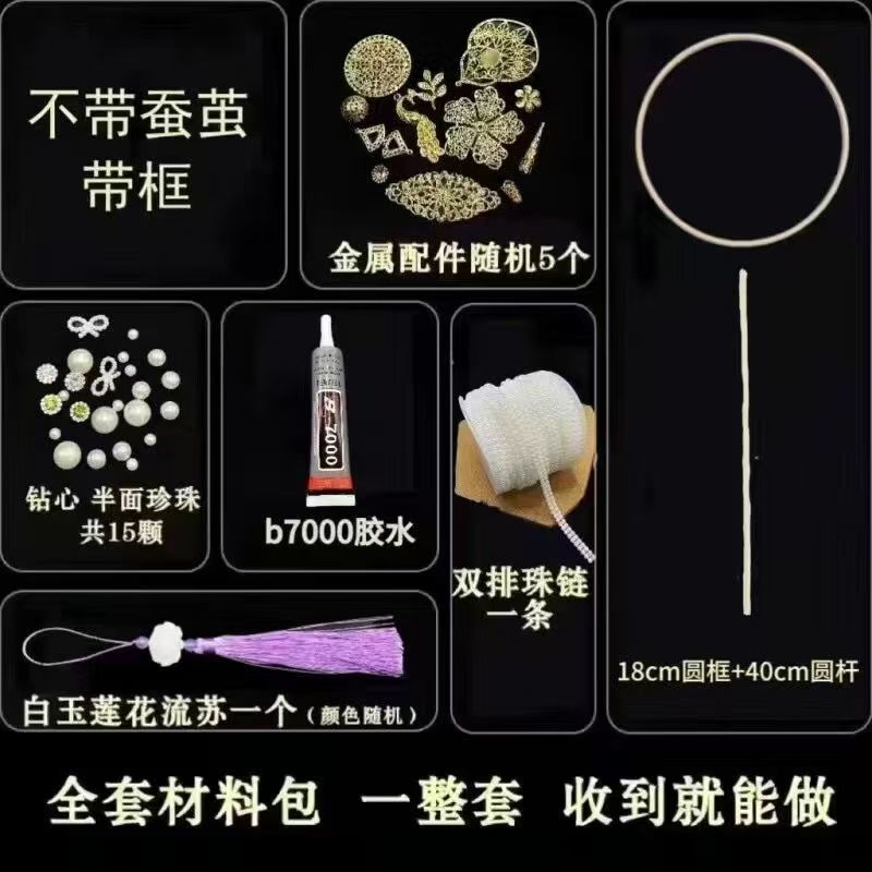 • /둥근 부채 프레임/재료 패키지 전체 세트 보내기 [누에고치 없음]