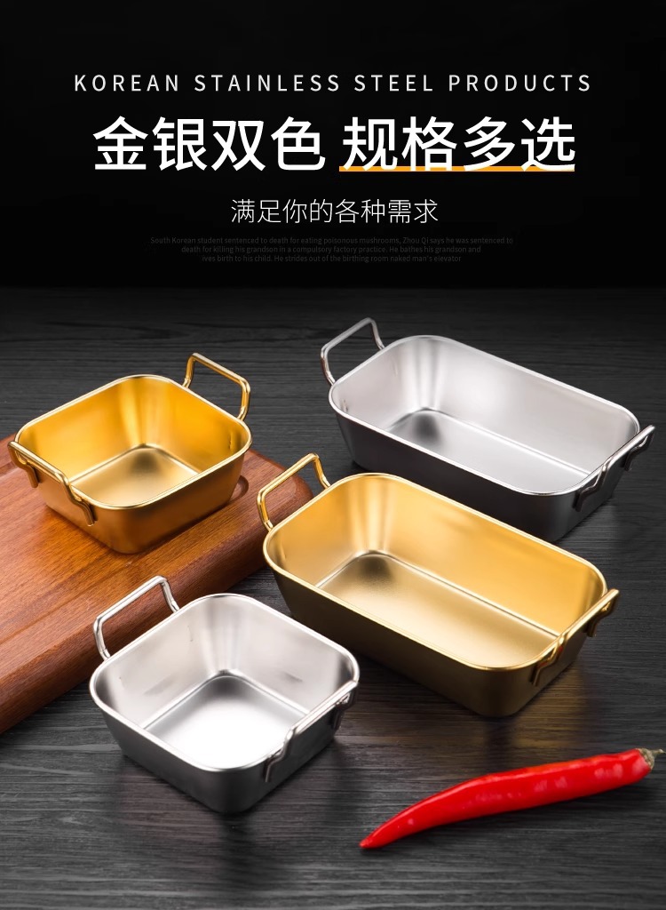 두꺼운 스테인레스 스틸 스낵 트레이 한국식 프라이드 치킨 감자 튀김 바구니 트레이 직사각형 레스토랑 다목적 트레이 귀가있는 스낵 트레이스토어 가기
