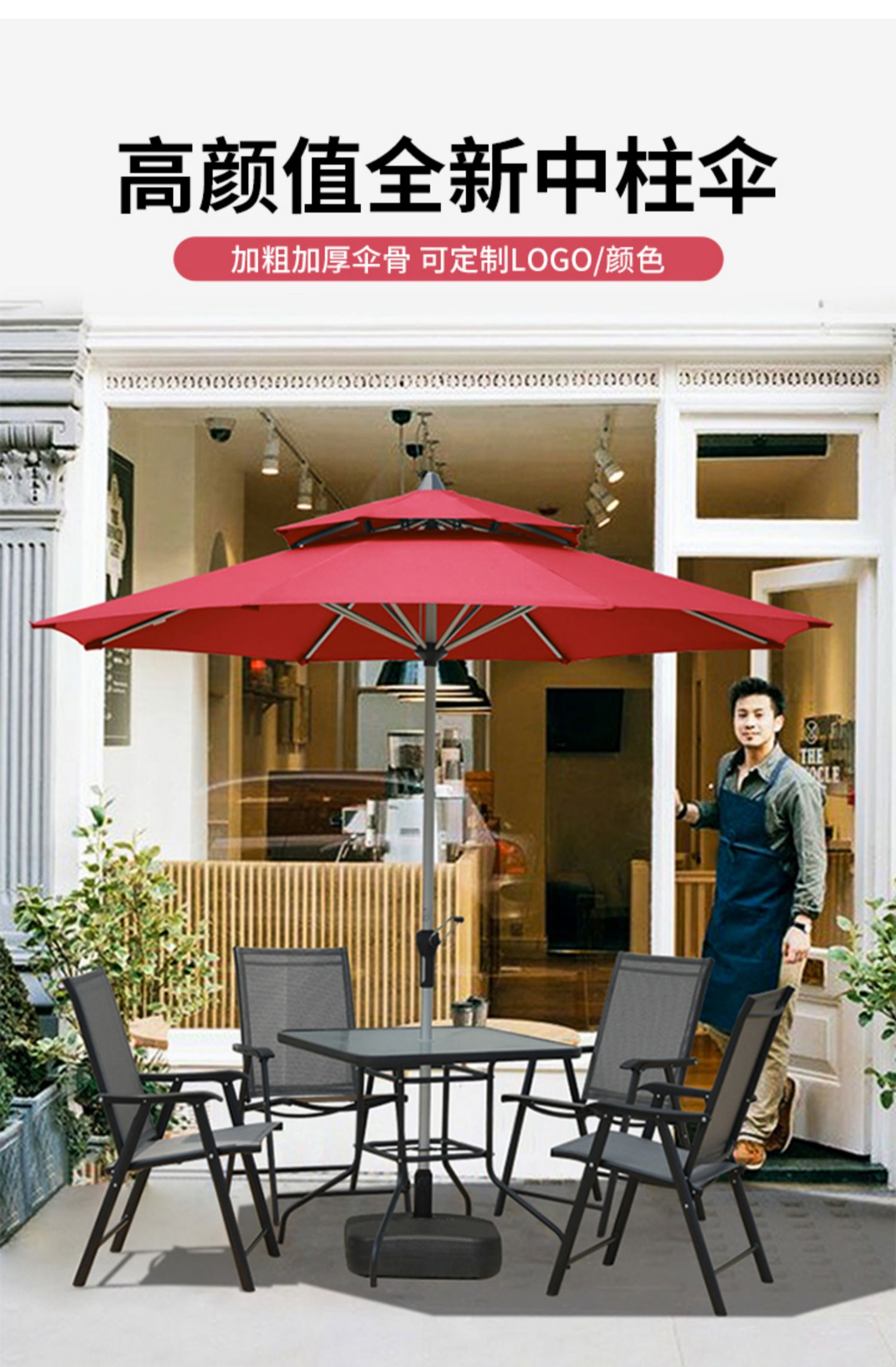 야외 파라솔, 야외 테이블과 의자, 파라솔이 있는 노점, 태양 우산, 정원 커피숍 야외 우산, 안뜰 우산, 중간 기둥스토어 가기