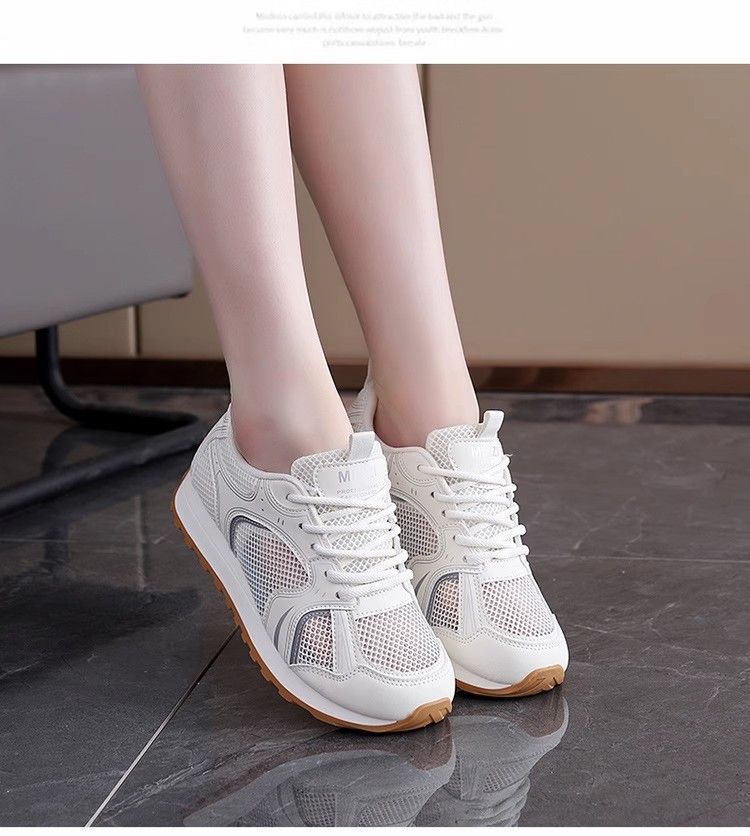 여성용 2025 다용도 소프트솔 메쉬 키높이 캐주얼 슈즈 얇은 미국식 통기성 레이스업 화이트 슈즈 편안함
