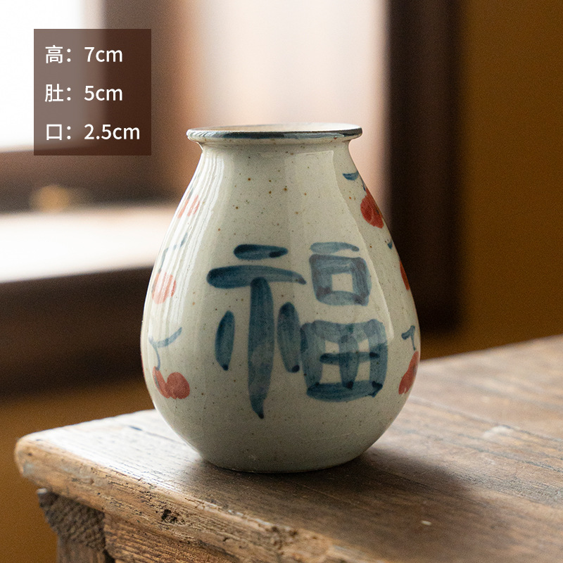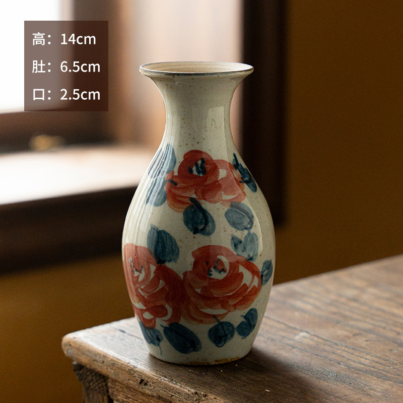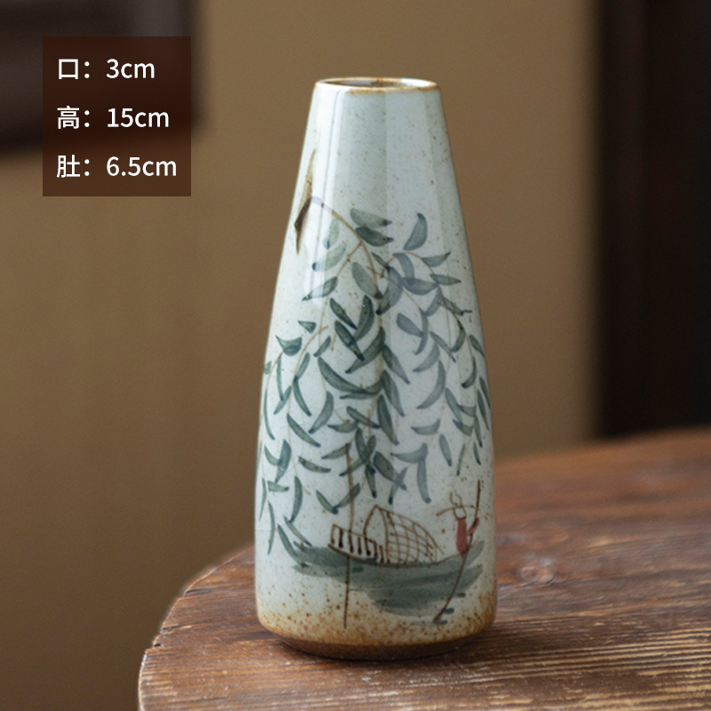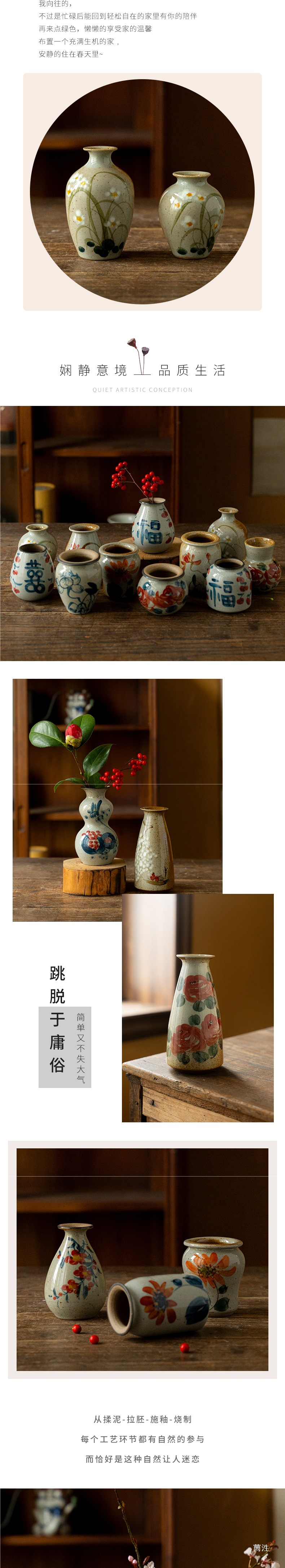 중국 손으로 그린 세라믹 꽃병, 수제 복고풍 거친 도자기 꽃병, 거실 데스크탑 수경 장식품, 가정 장식스토어 가기