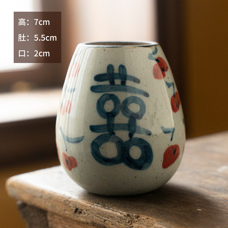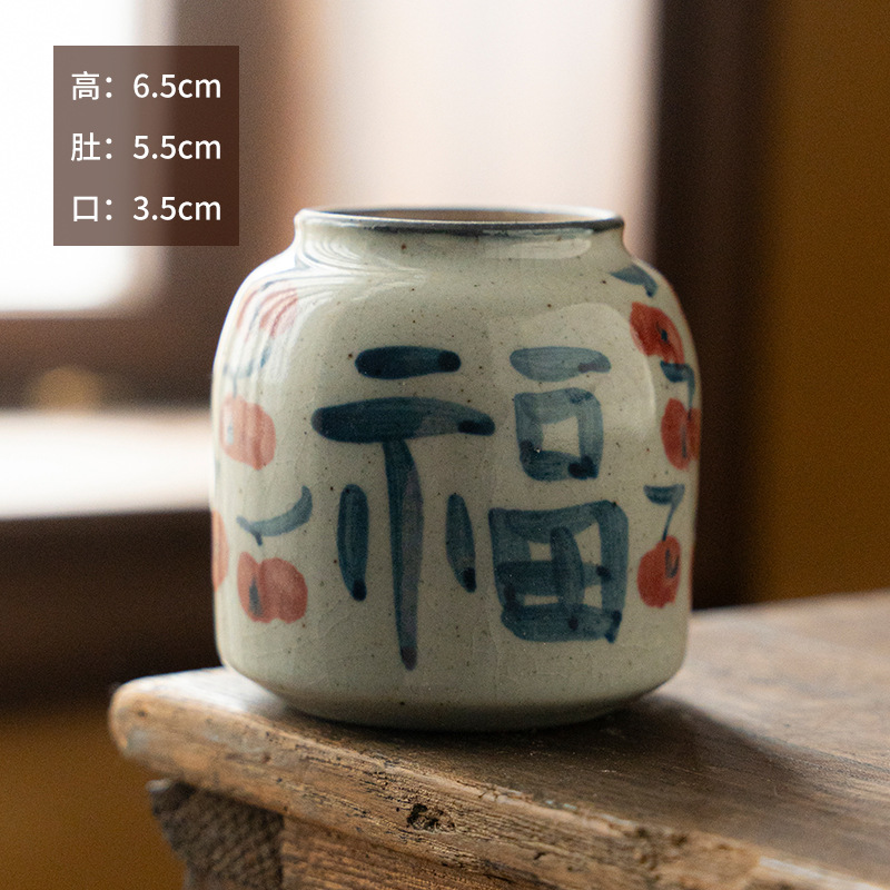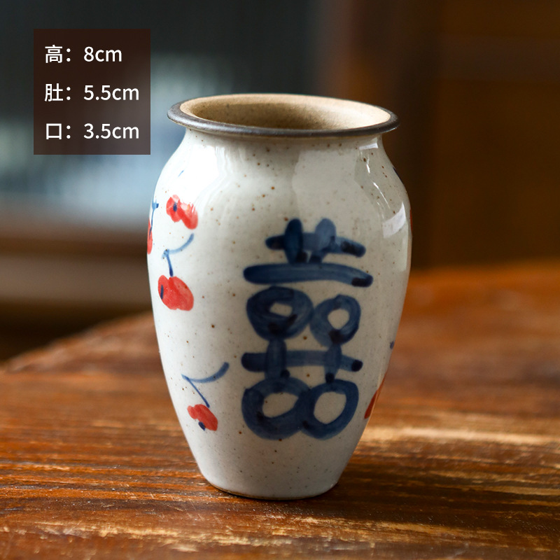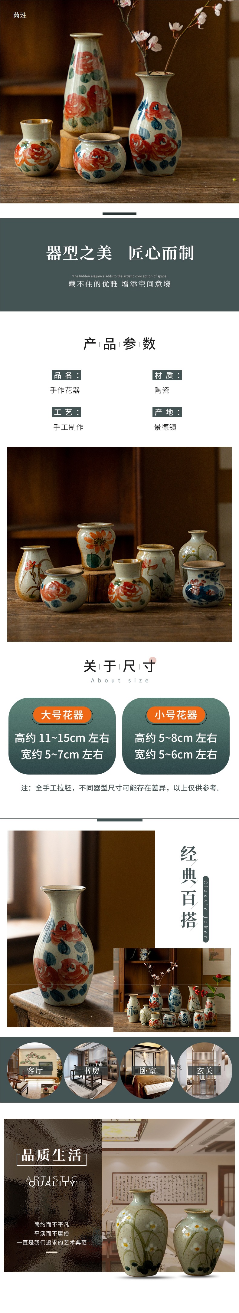 중국 손으로 그린 세라믹 꽃병, 수제 복고풍 거친 도자기 꽃병, 거실 데스크탑 수경 장식품, 가정 장식스토어 가기