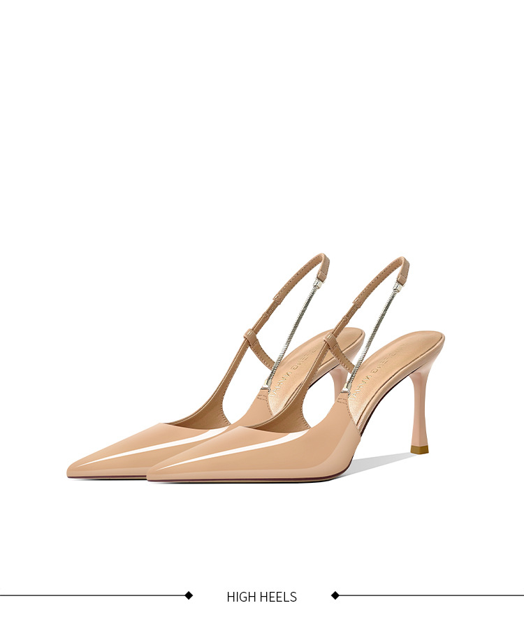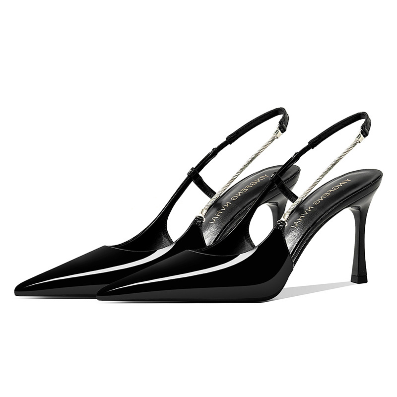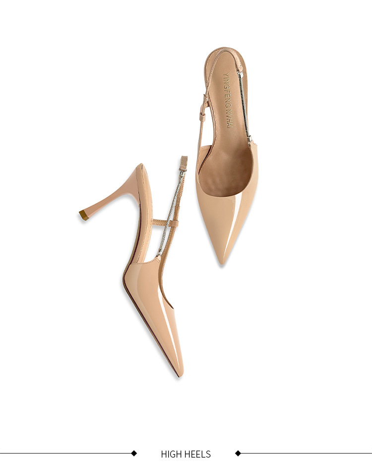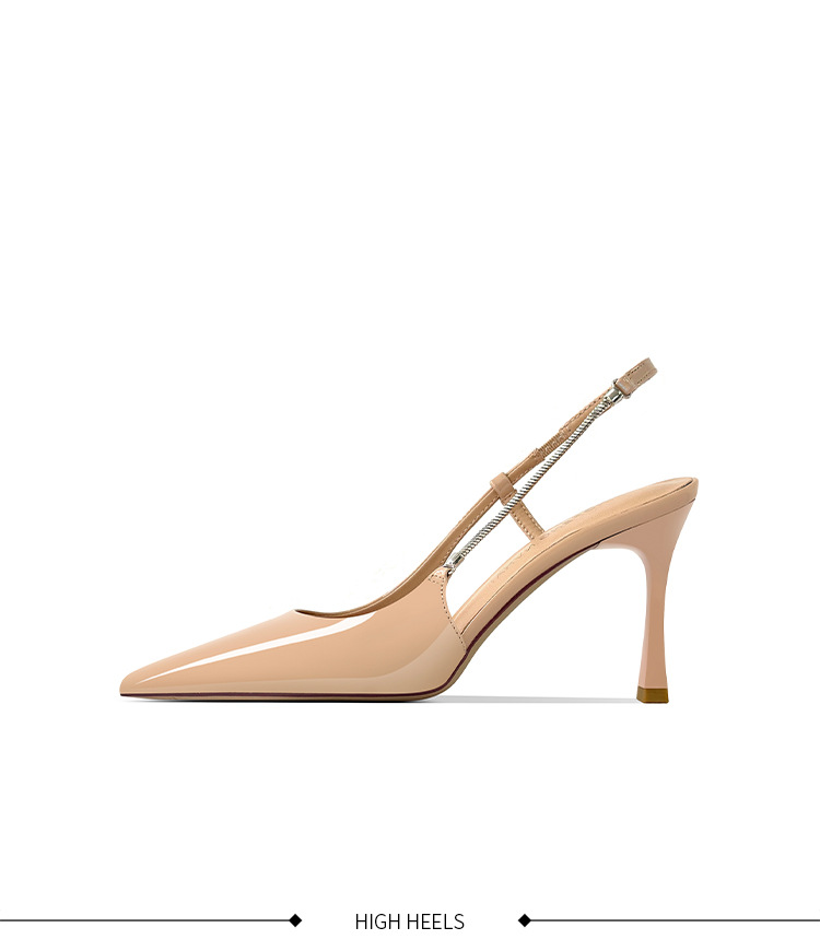 《재고 있음》C 브랜드 실버 뾰족코 하이힐 샌들 여성용 프렌치 스타일 초봄 우아한 얇은 굽 뒤가 열린 신발
