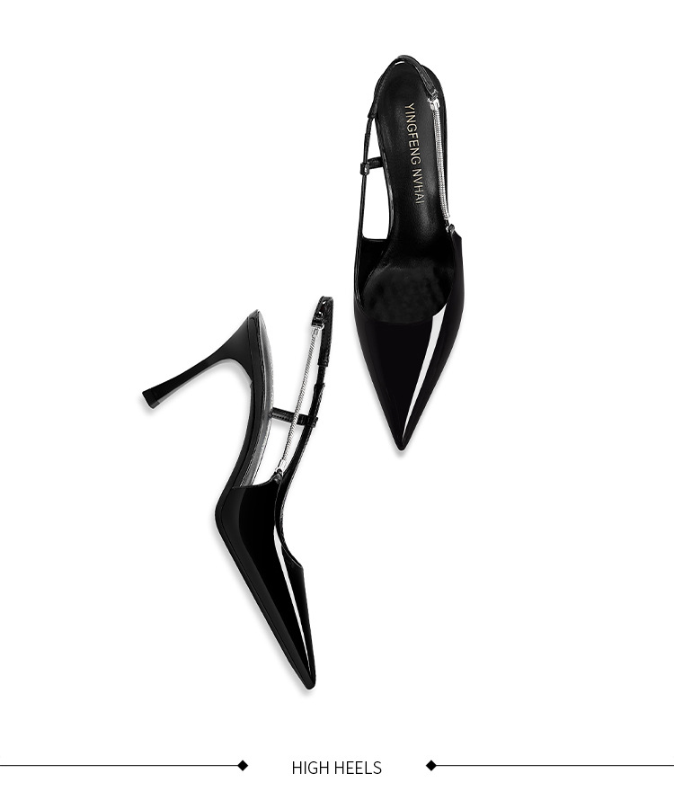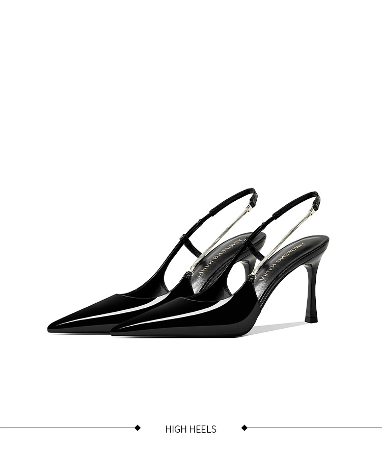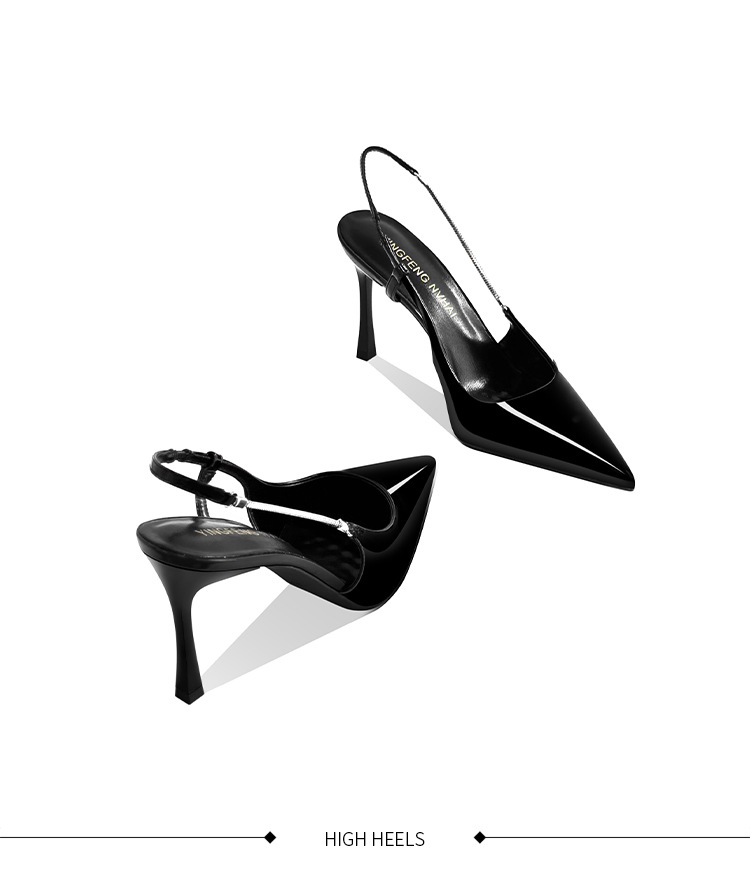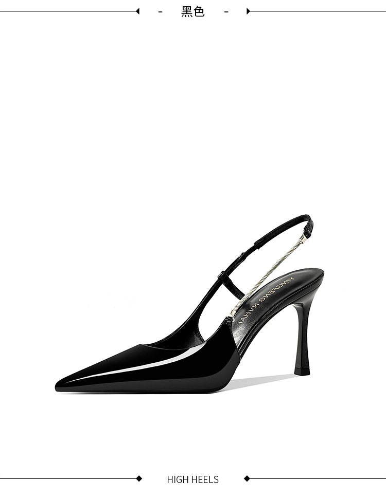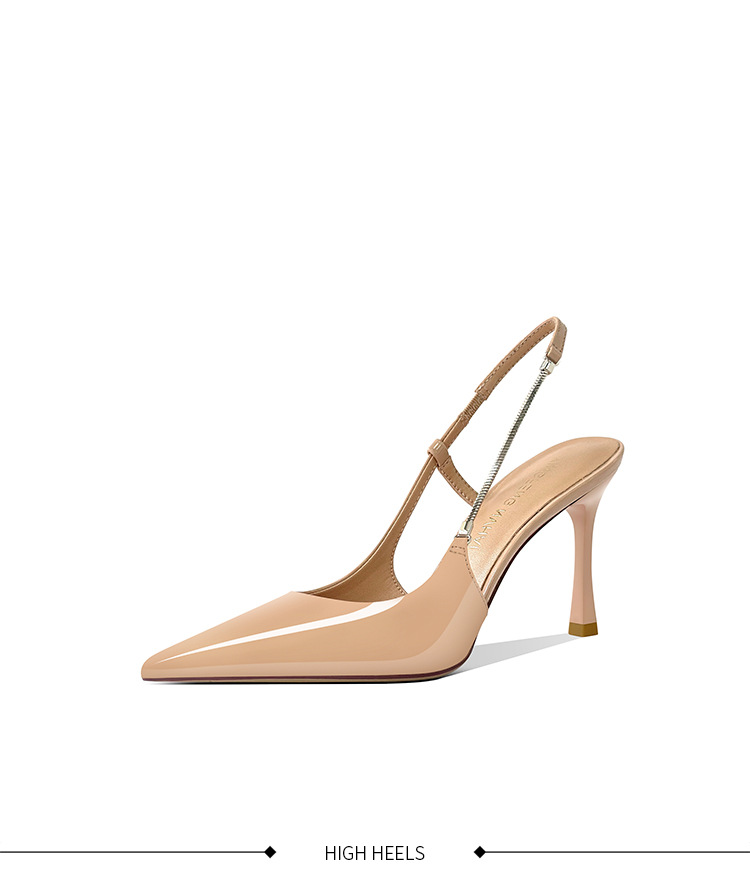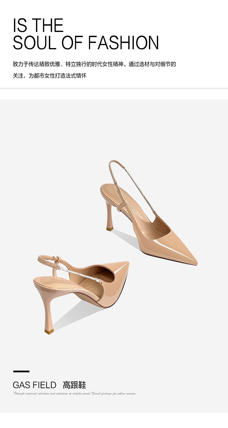 《재고 있음》C 브랜드 실버 뾰족코 하이힐 샌들 여성용 프렌치 스타일 초봄 우아한 얇은 굽 뒤가 열린 신발스토어 가기