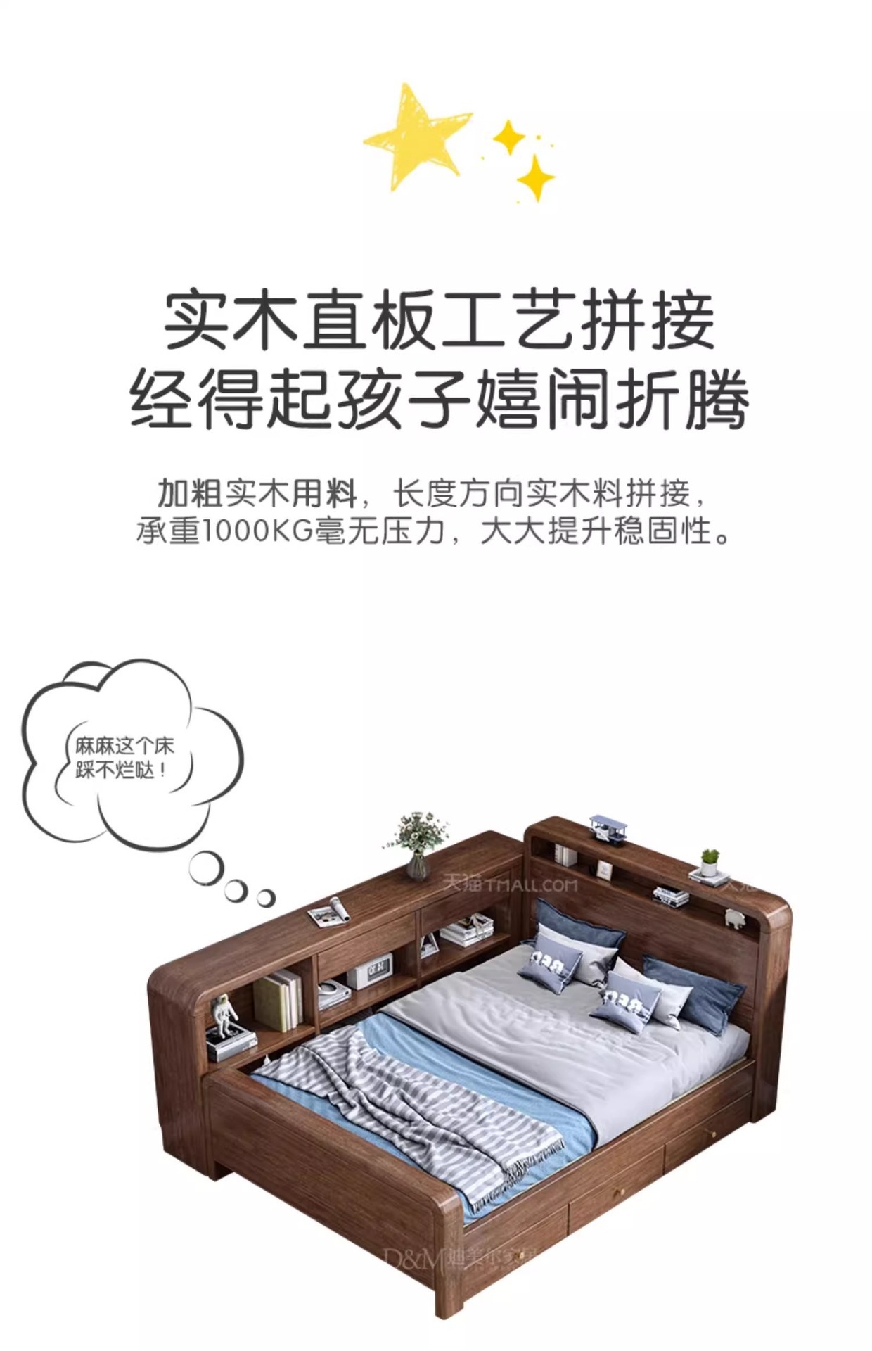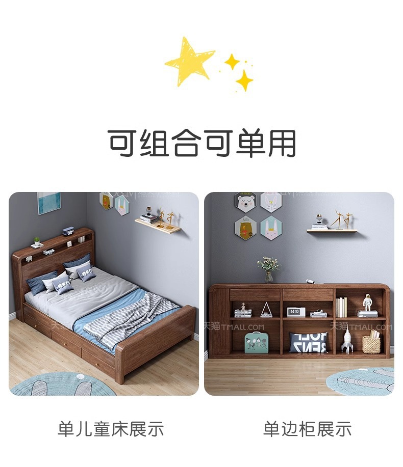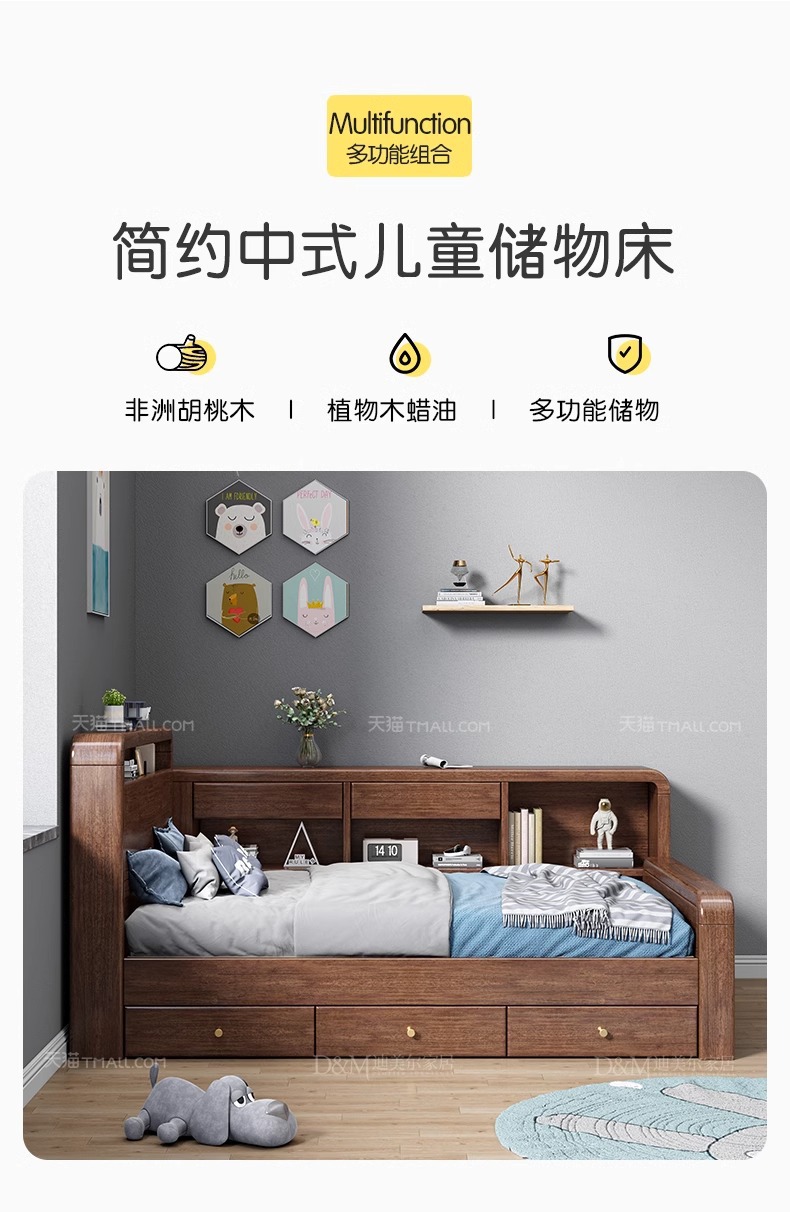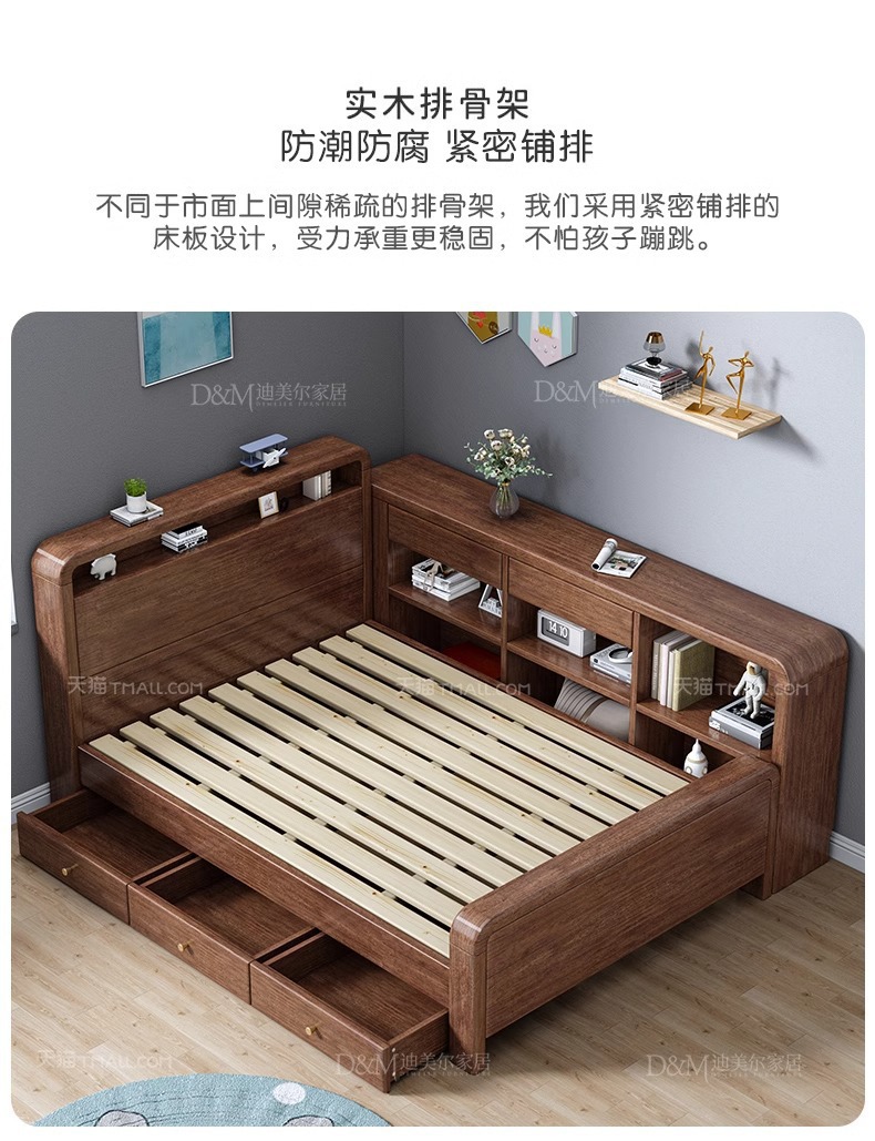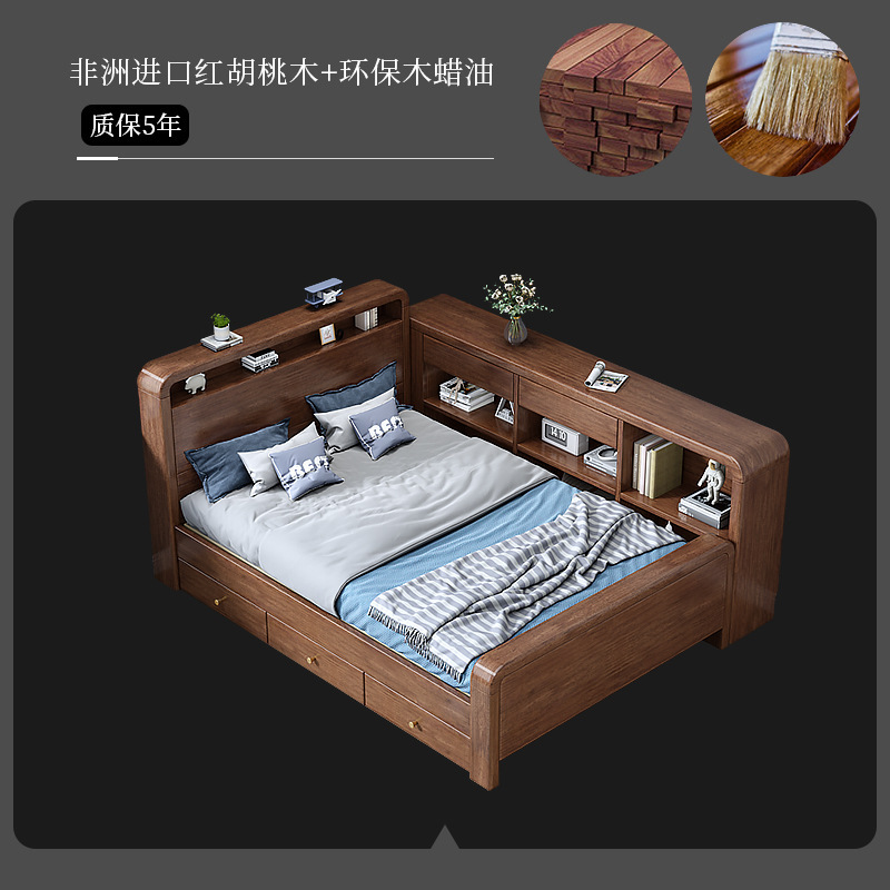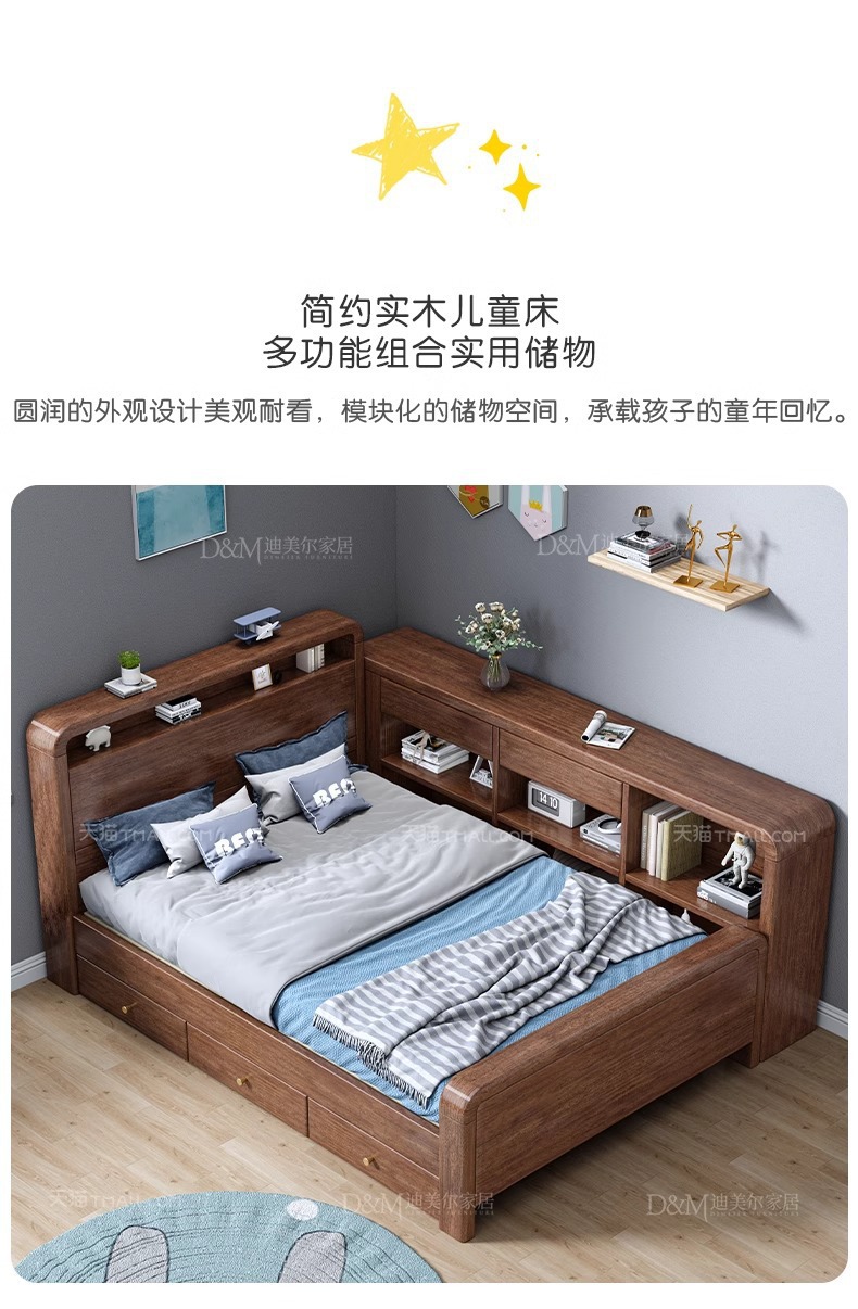원목 어린이 침대 호두 다다미 침대 책장 침대 일체형 침실 다기능 수납 싱글 침대 수납 침대