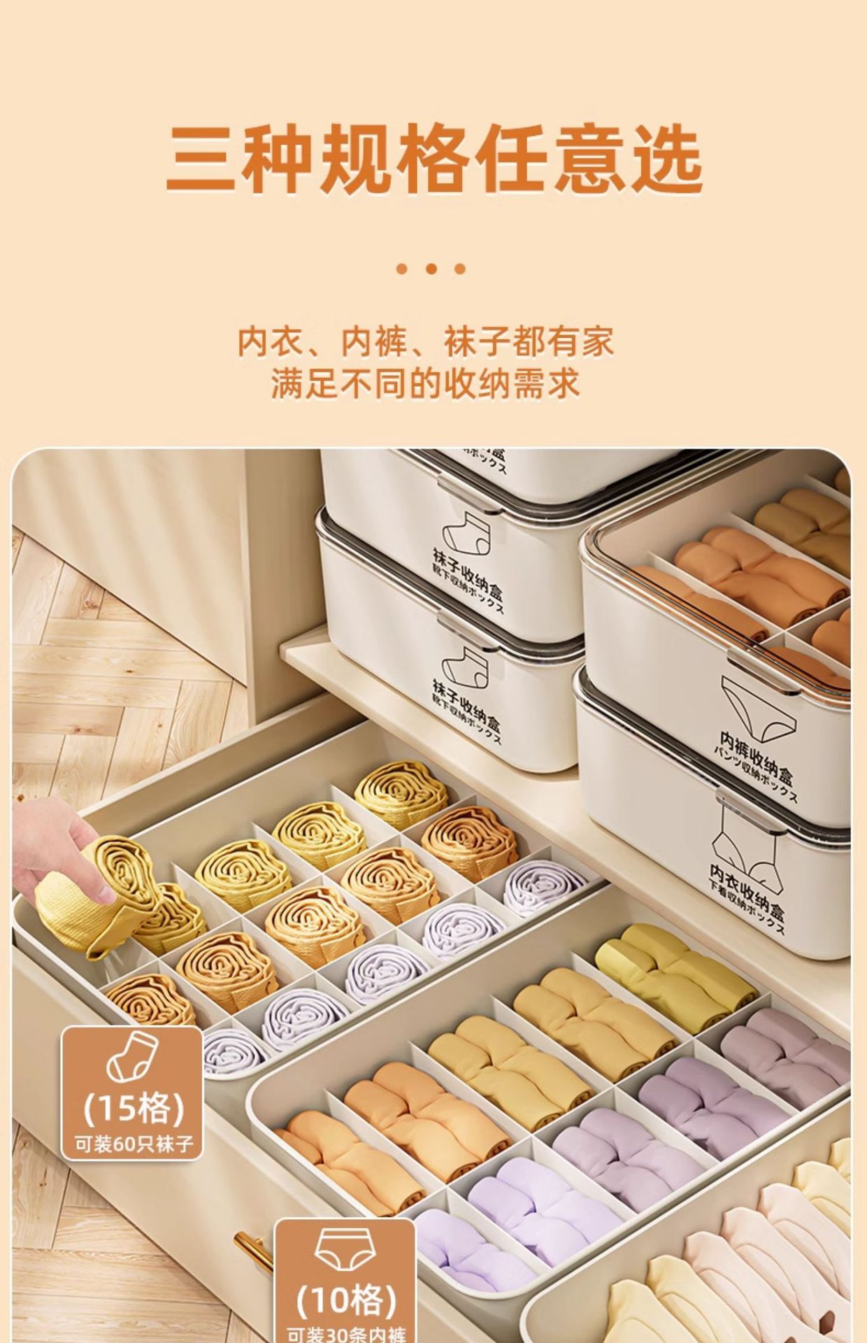 속옷과 속옷을 보관할 수 있는 칸막이 옷장, 가정용 속옷과 양말을 보관할 수 있는 3-in-1 분리형 정리함