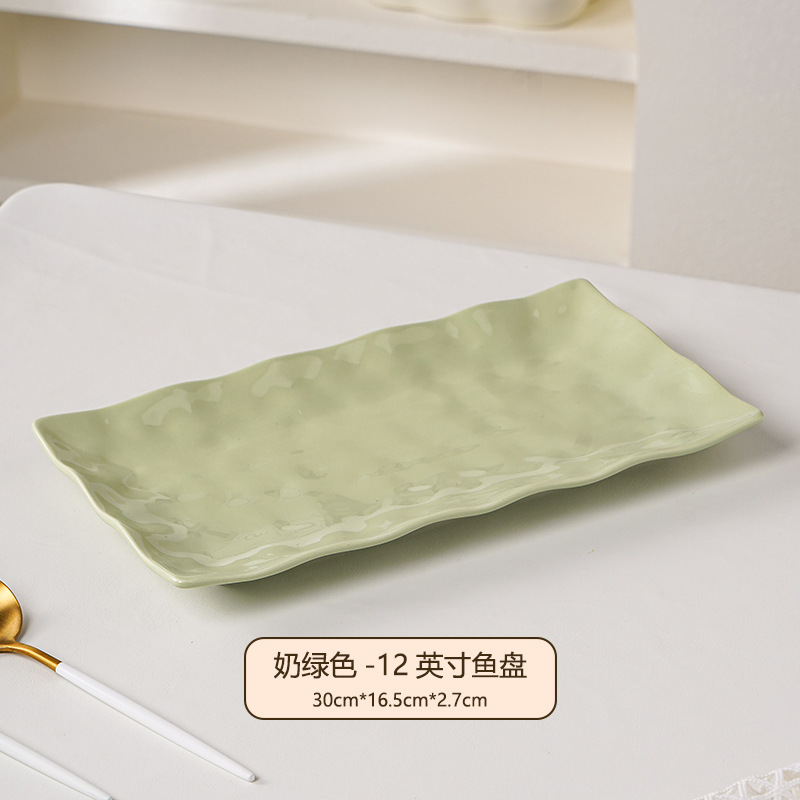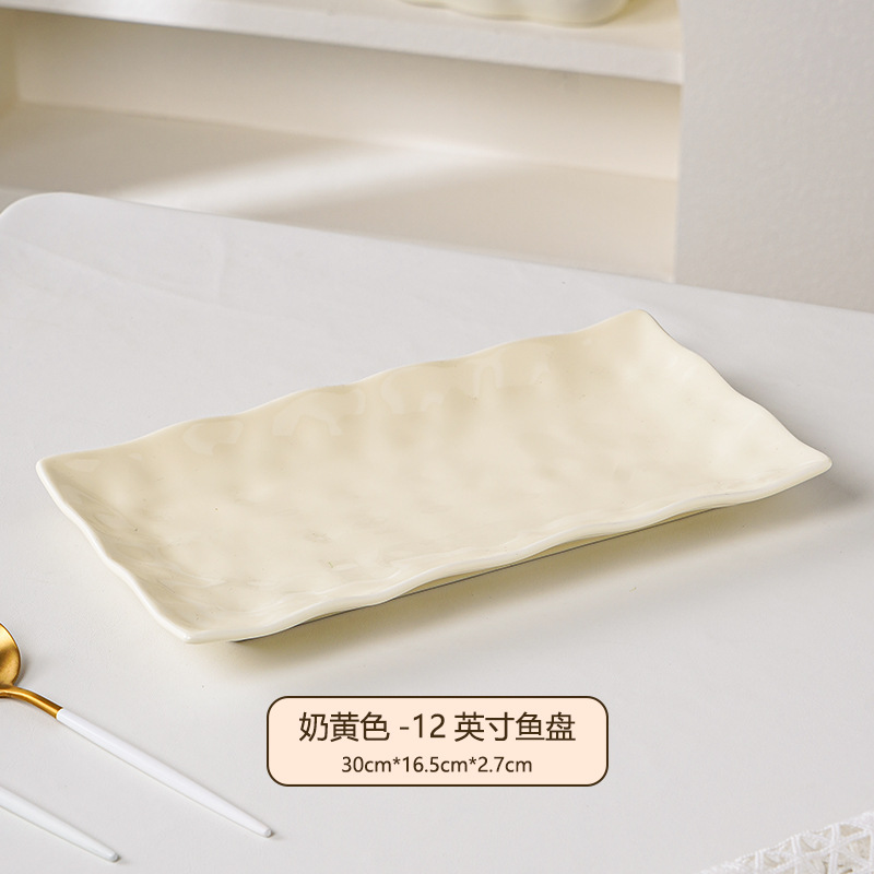 크림 스타일 생선 접시 가정용 세라믹 2024 새로운 인터넷 연예인 찜 생선 접시 느낌 12inch 긴 접시