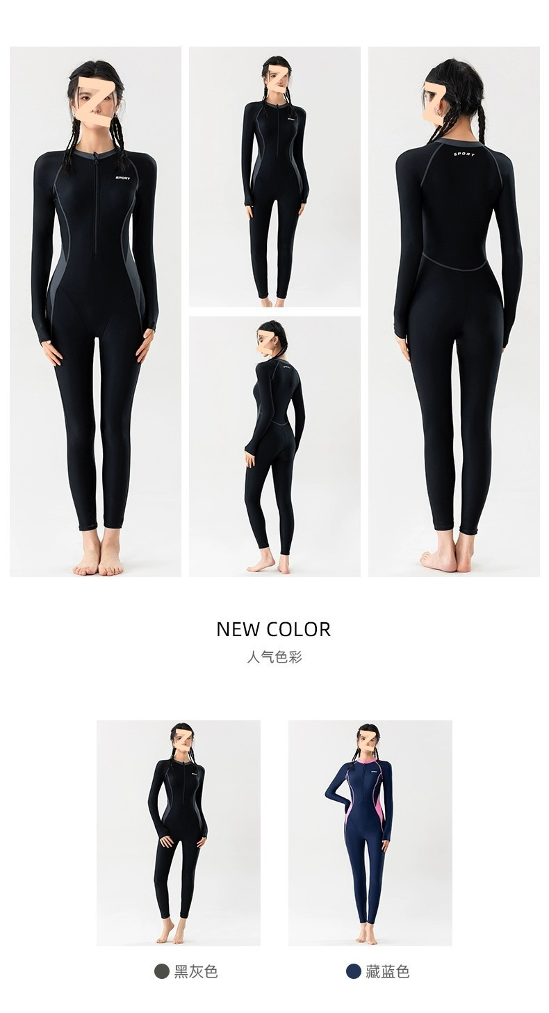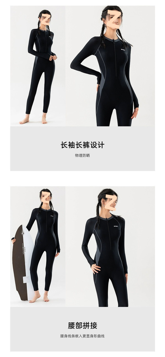여성용 수영복 원피스 긴팔 바지 자외선 차단 속건 보수적 온천 해파리 슈트 스노클링 서핑 잠수복 여성용