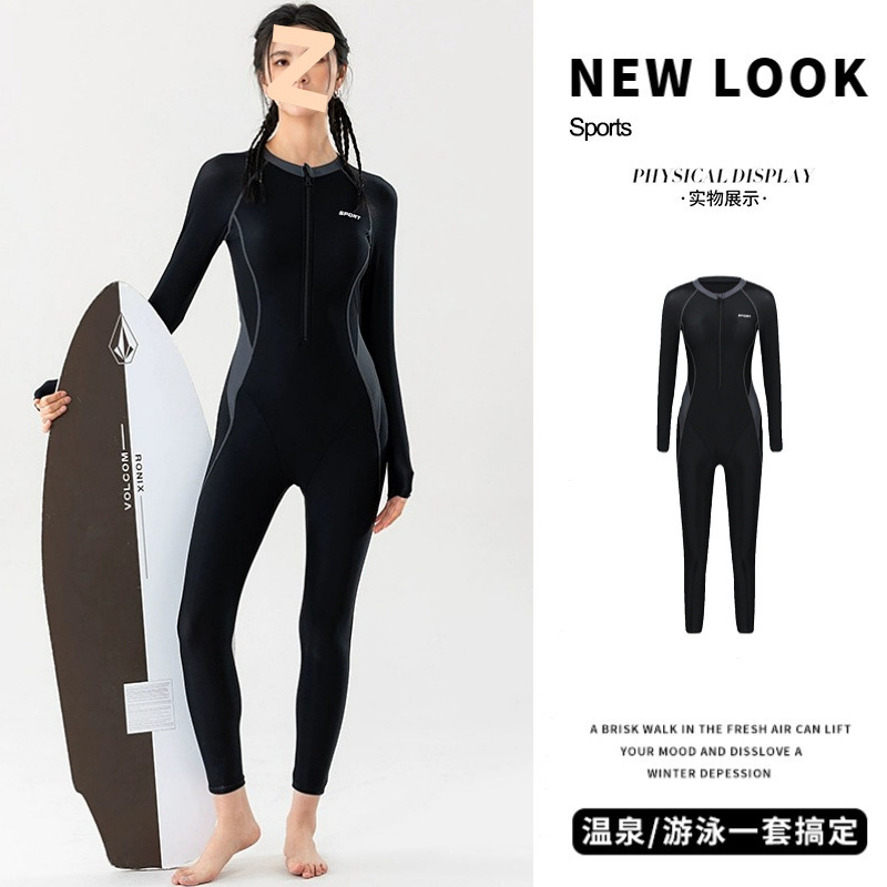 여성용 수영복 원피스 긴팔 바지 자외선 차단 속건 보수적 온천 해파리 슈트 스노클링 서핑 잠수복 여성용스토어 가기