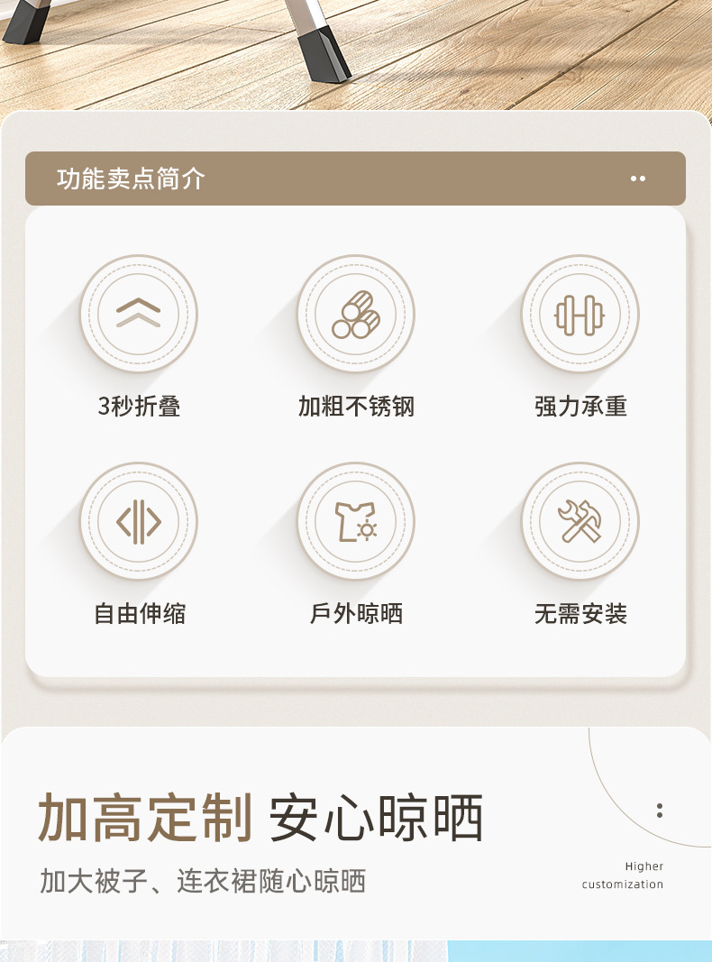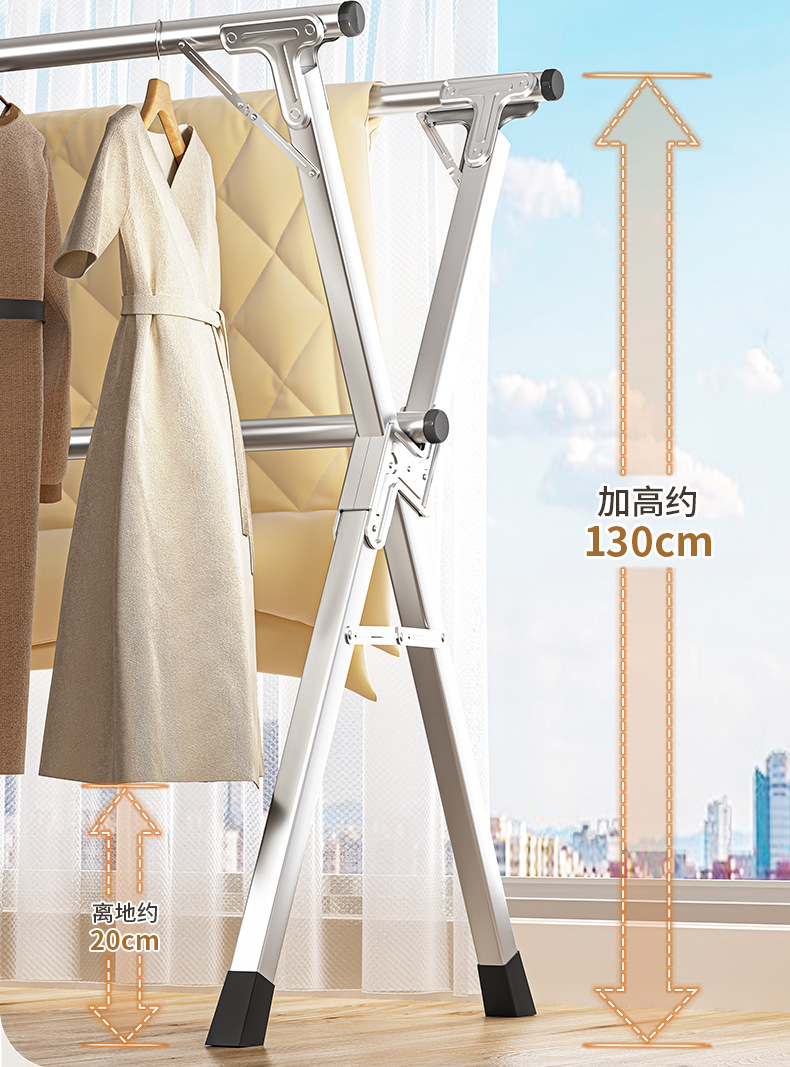 스테인레스 스틸 접이식 옷걸이 랙 바닥 실내 및 실외 발코니 침실 옷걸이 가정용 옷걸이 침구 건조 봉스토어 가기