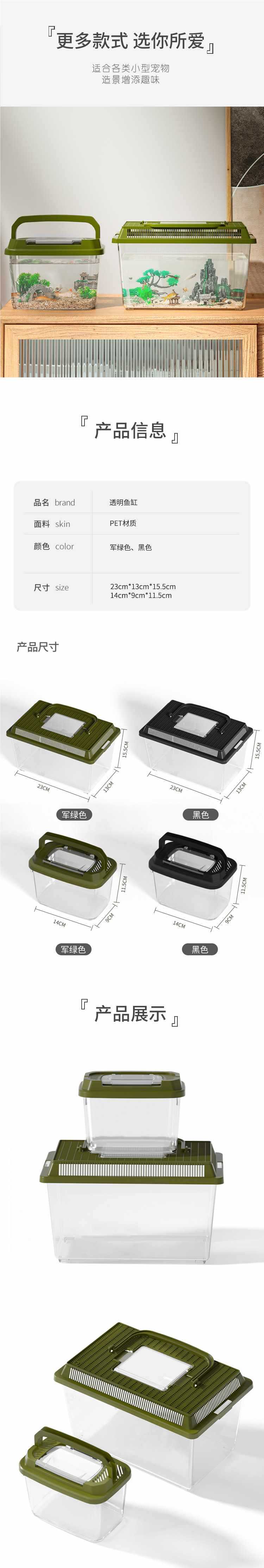 새로운 플라스틱 야외 곤충 용기 가정용 물고기 탱크 거북이 탱크 뚜껑이있는 중소형 휴대용 가정용 사육 상자