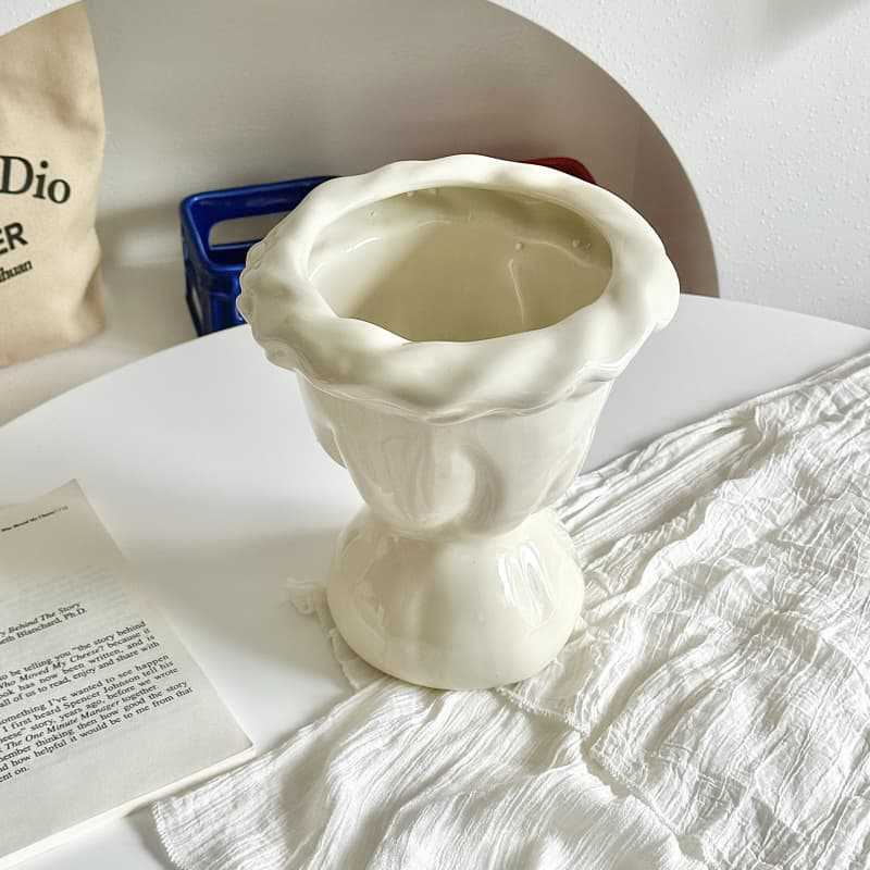 • 크림색 대형 꽃병 + 장미 꽃다발