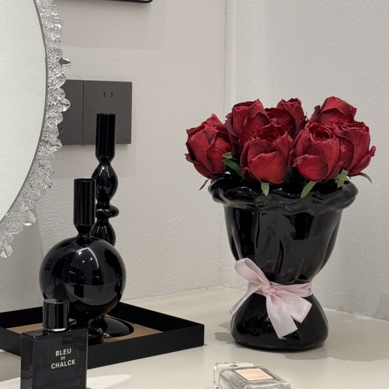 • 검은색 작은 꽃병 + 장미 꽃다발