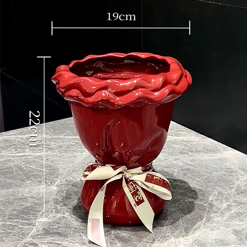 • 커다란 빨간 꽃병 + 장미 꽃다발