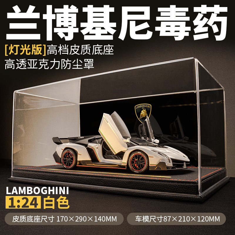 • [화이트] 람보 포이즌 + 가죽 야광 방진 박스 배경 로고 포함 - 1:24 한정판 스포츠카 [선물 선택]