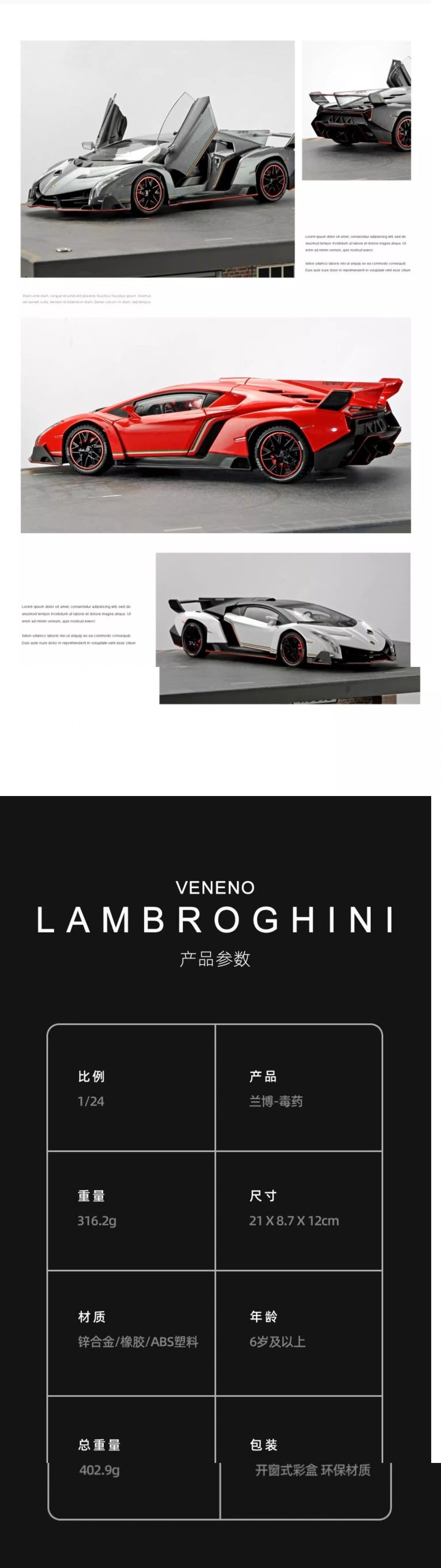 • 레드-람보르기니 포이즌 [창 박스형]-1:24 한정판 스포츠카 [선물 선택]