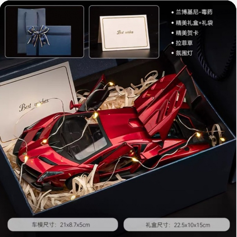 • [레드] 람보 포이즌 + 선물상자 선물가방 + 라피아 + 라이트 + 축하카드 - 1:24 한정판 스포츠카 [선물추천]