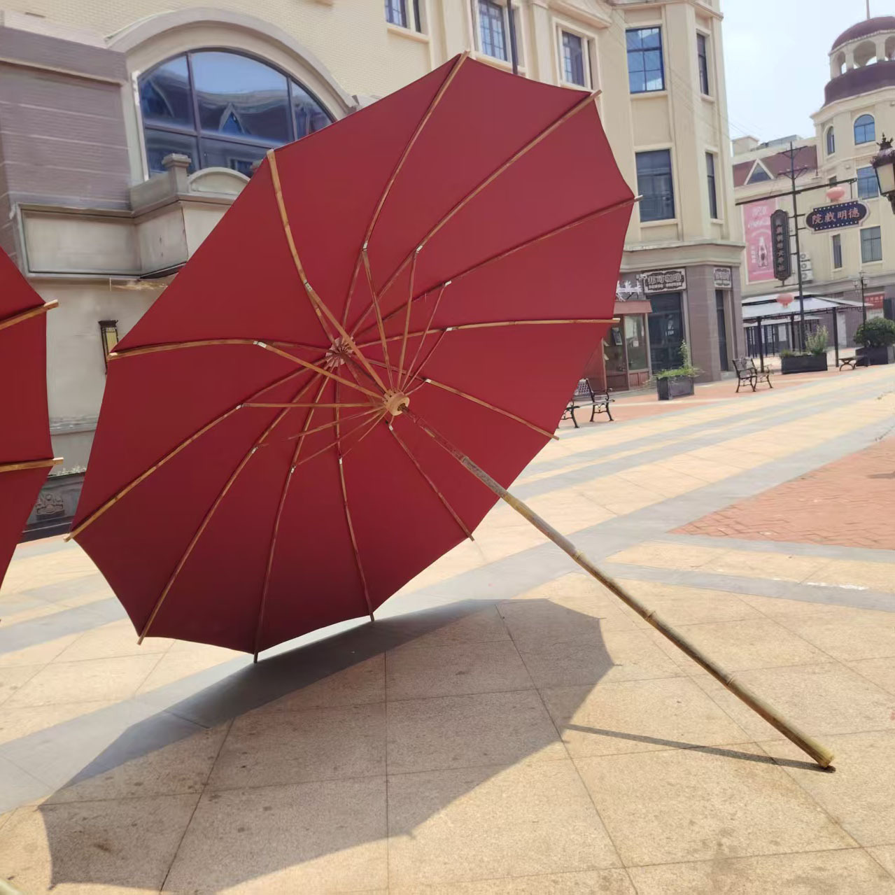 맞춤형 중국 스타일 야외 레저 캠핑 대나무 목재 프레임 안뜰 우산 토나시 오일 천 우산 복고풍 우산 소품 우산 고대 스타일 우산