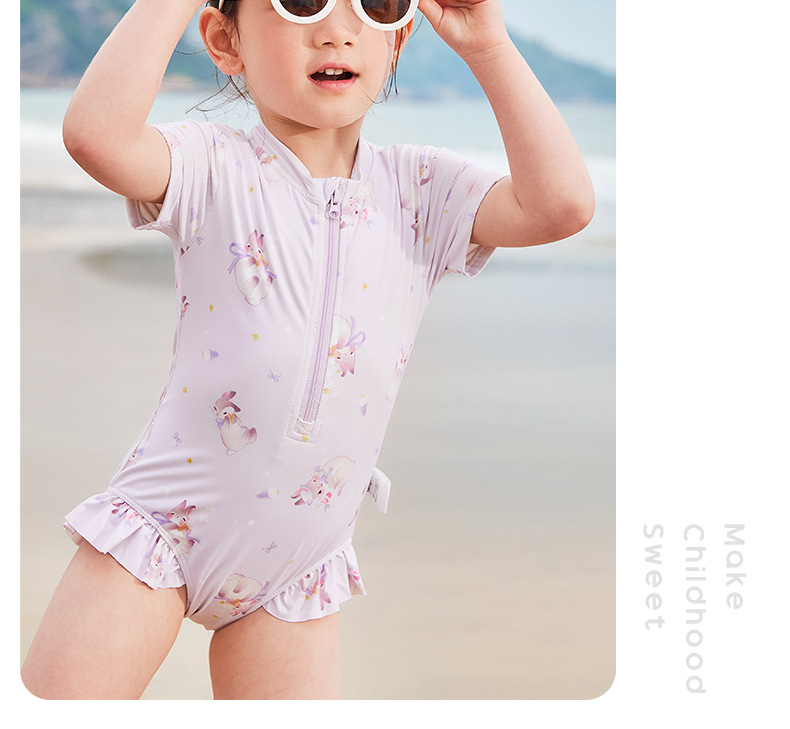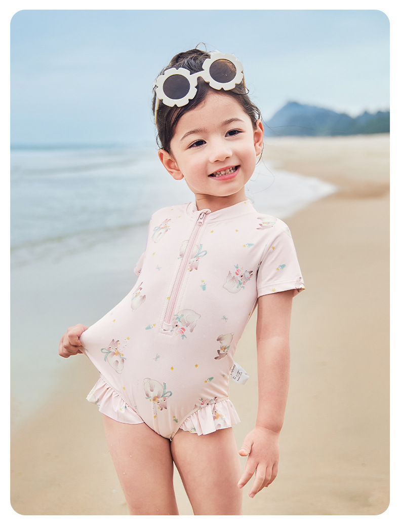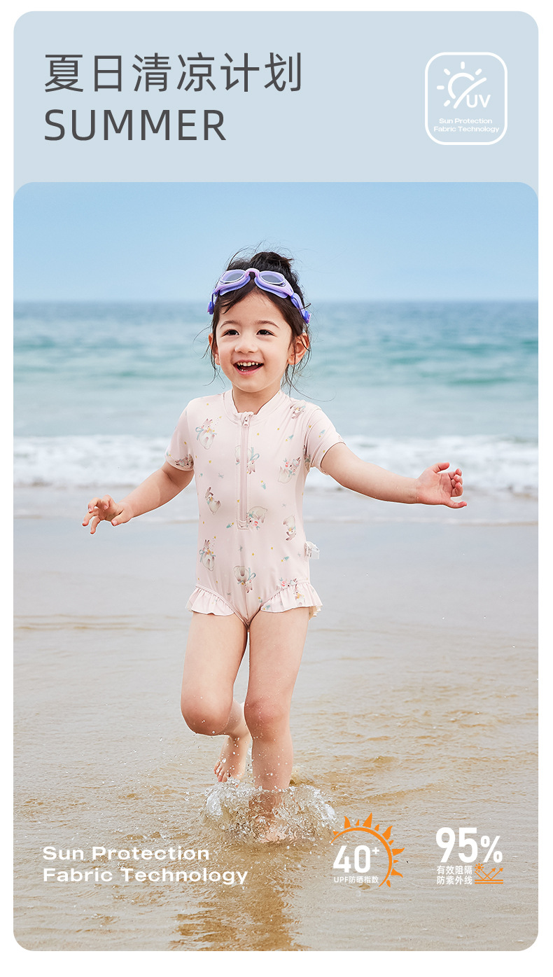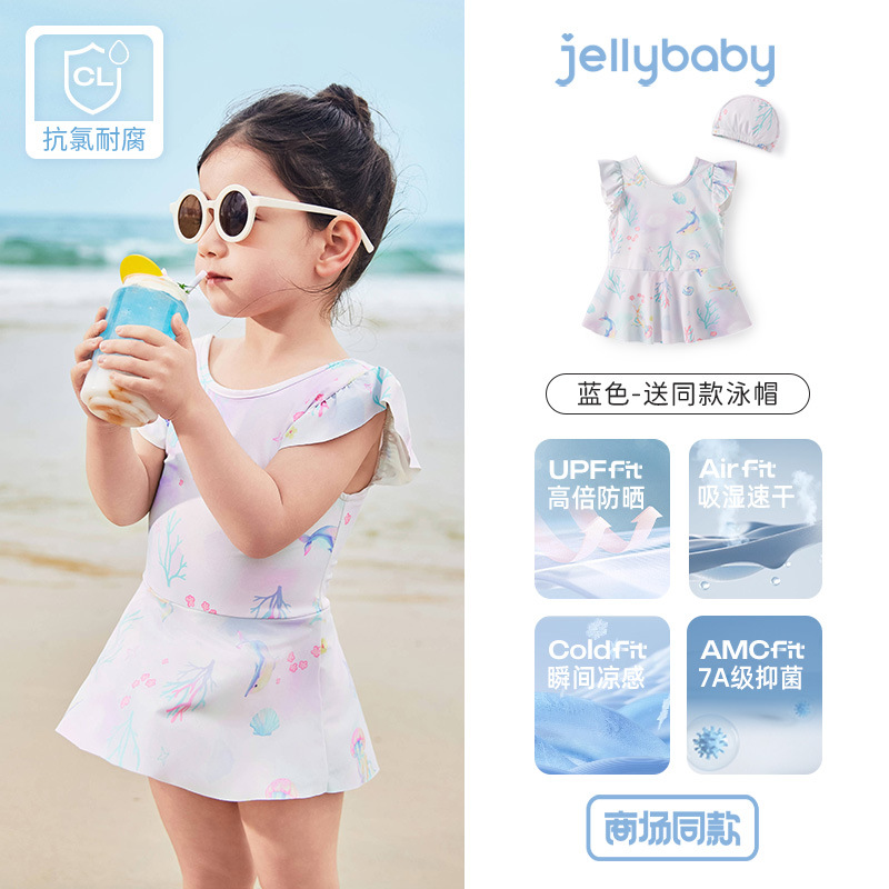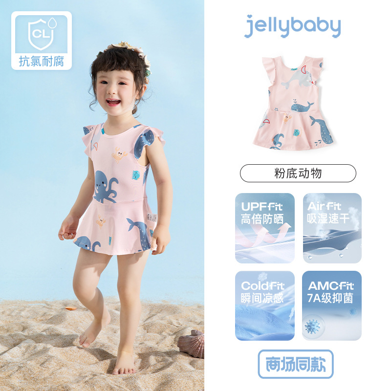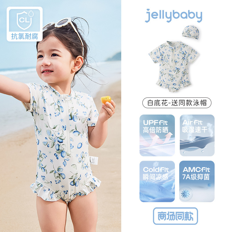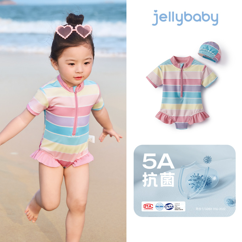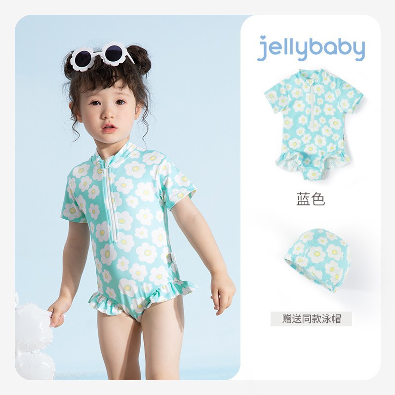 Jerry Baby 스포츠 수영복 원피스 아동 수영복 소녀 반팔 해변 해변 자외선 차단제 속건성스토어 가기