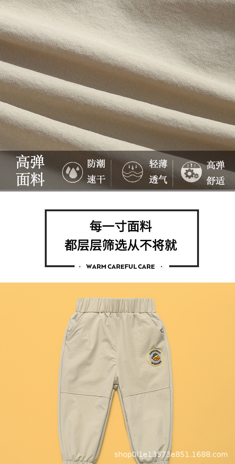 작은 노란색 오리 어린이 고탄성 싱글 바지 얇은 봄, 여름, 가을 아기 바지 소년과 소녀를위한 여름 바지