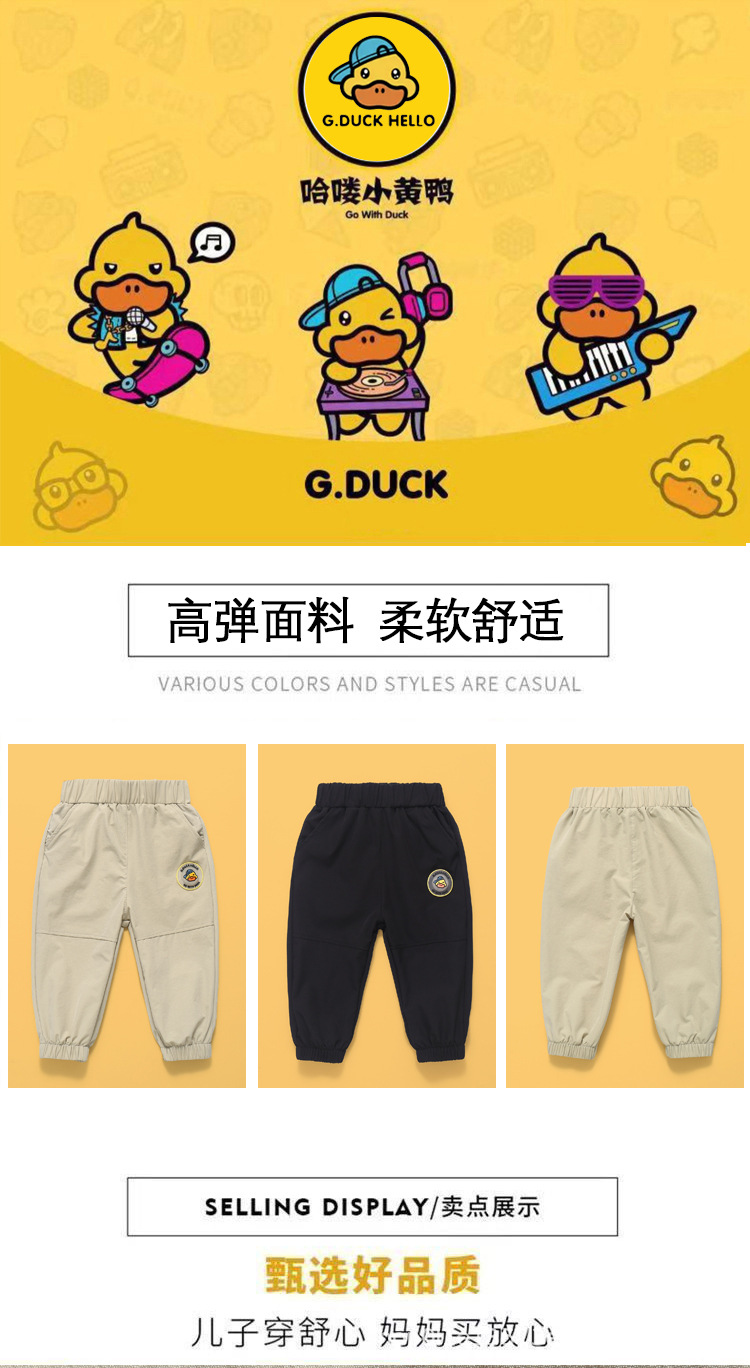 작은 노란색 오리 어린이 고탄성 싱글 바지 얇은 봄, 여름, 가을 아기 바지 소년과 소녀를위한 여름 바지스토어 가기