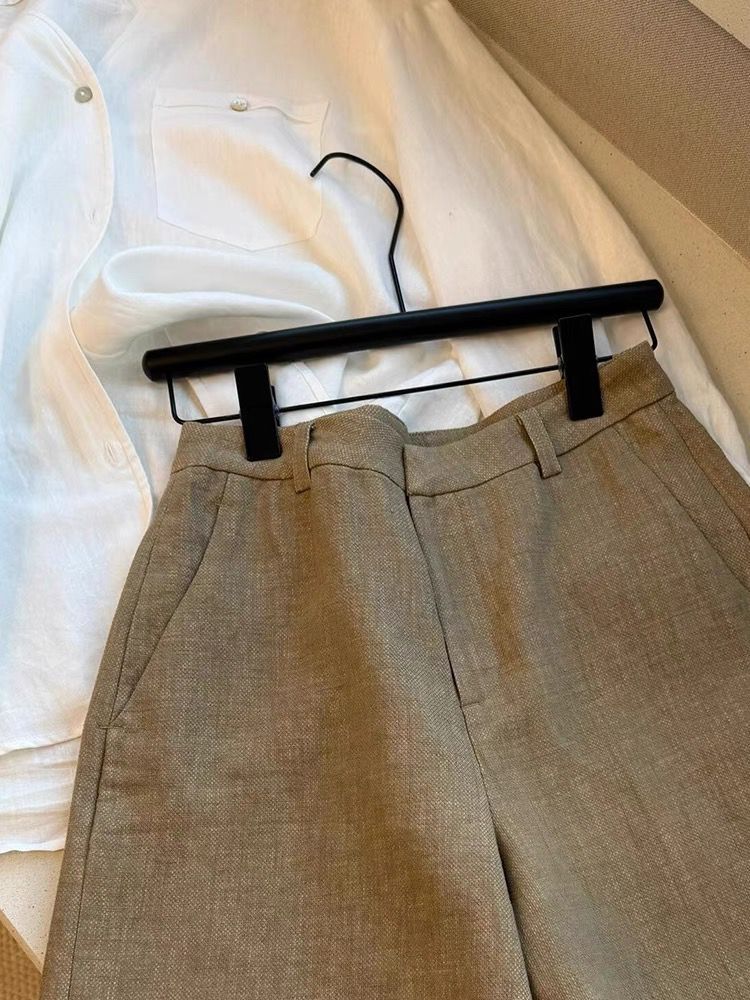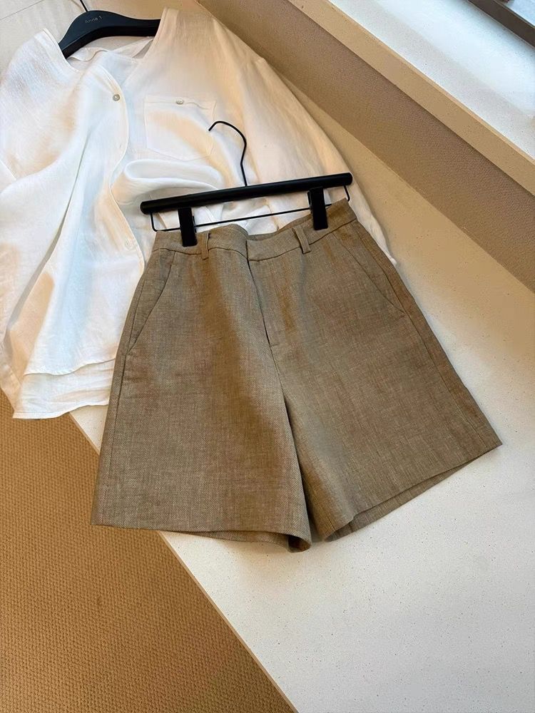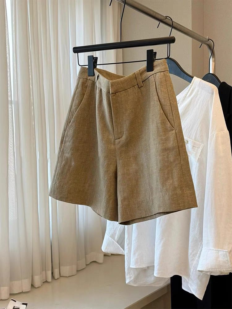 CHAO 등급 추천! 패셔너블하고 캐주얼한 드레이프 올드 머니 스타일의 여성용 카키색 린넨 하이웨이스트 슬리밍 레그 레그 반바지스토어 가기