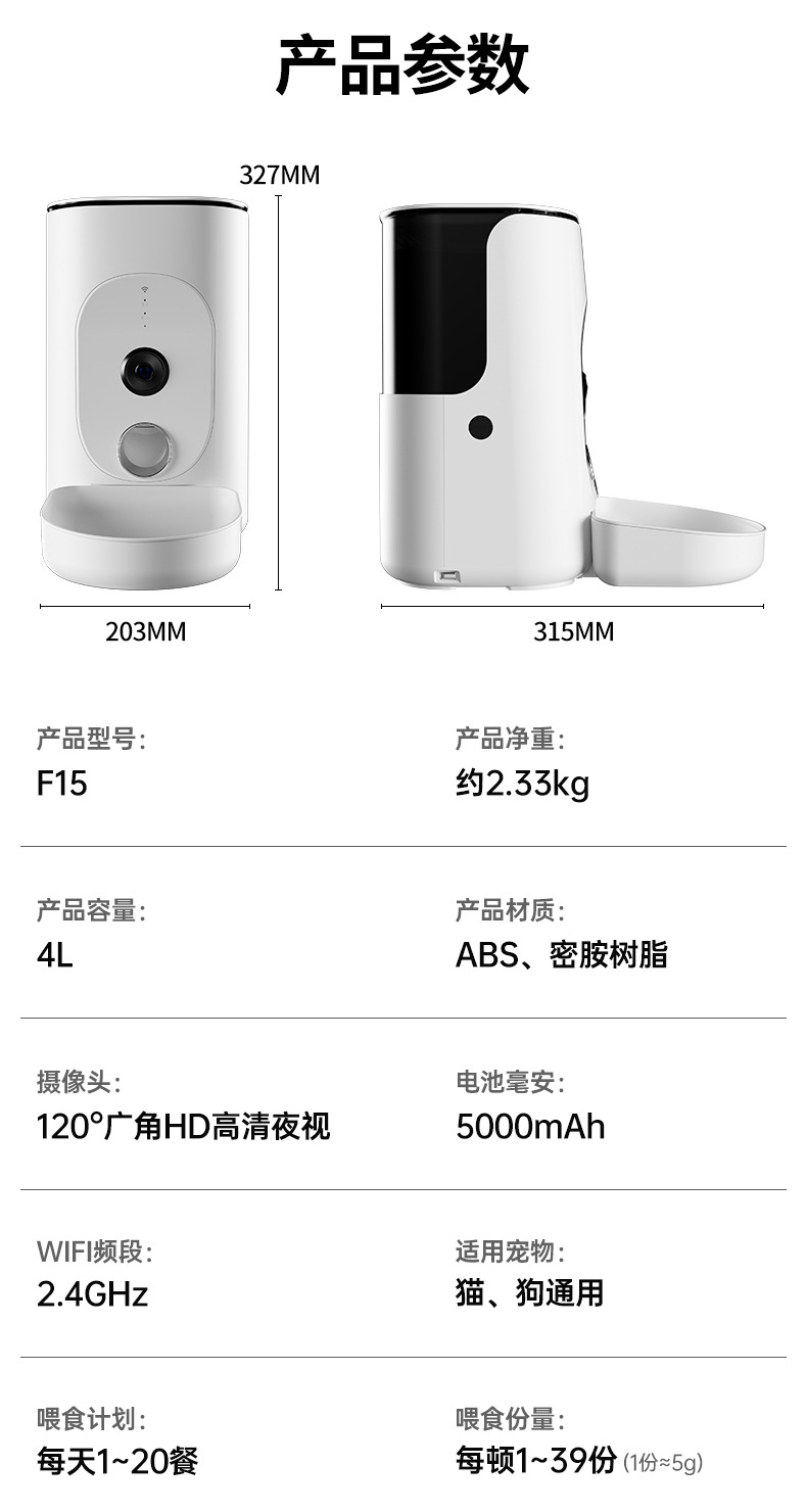 스마트 시각적 모니터링 고양이 자동 급식기 고양이 사료 및 개 사료 개 시간 및 정량 셀프 서비스 먹이 먹이 기계