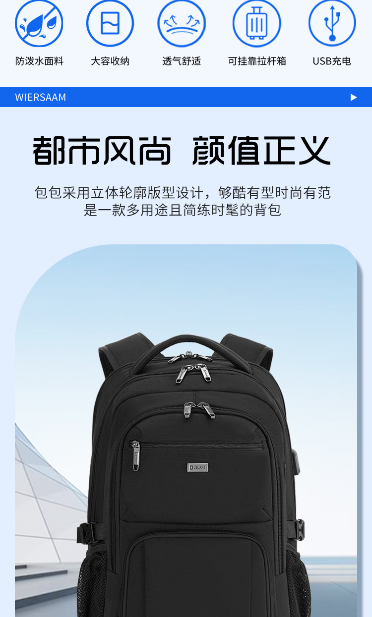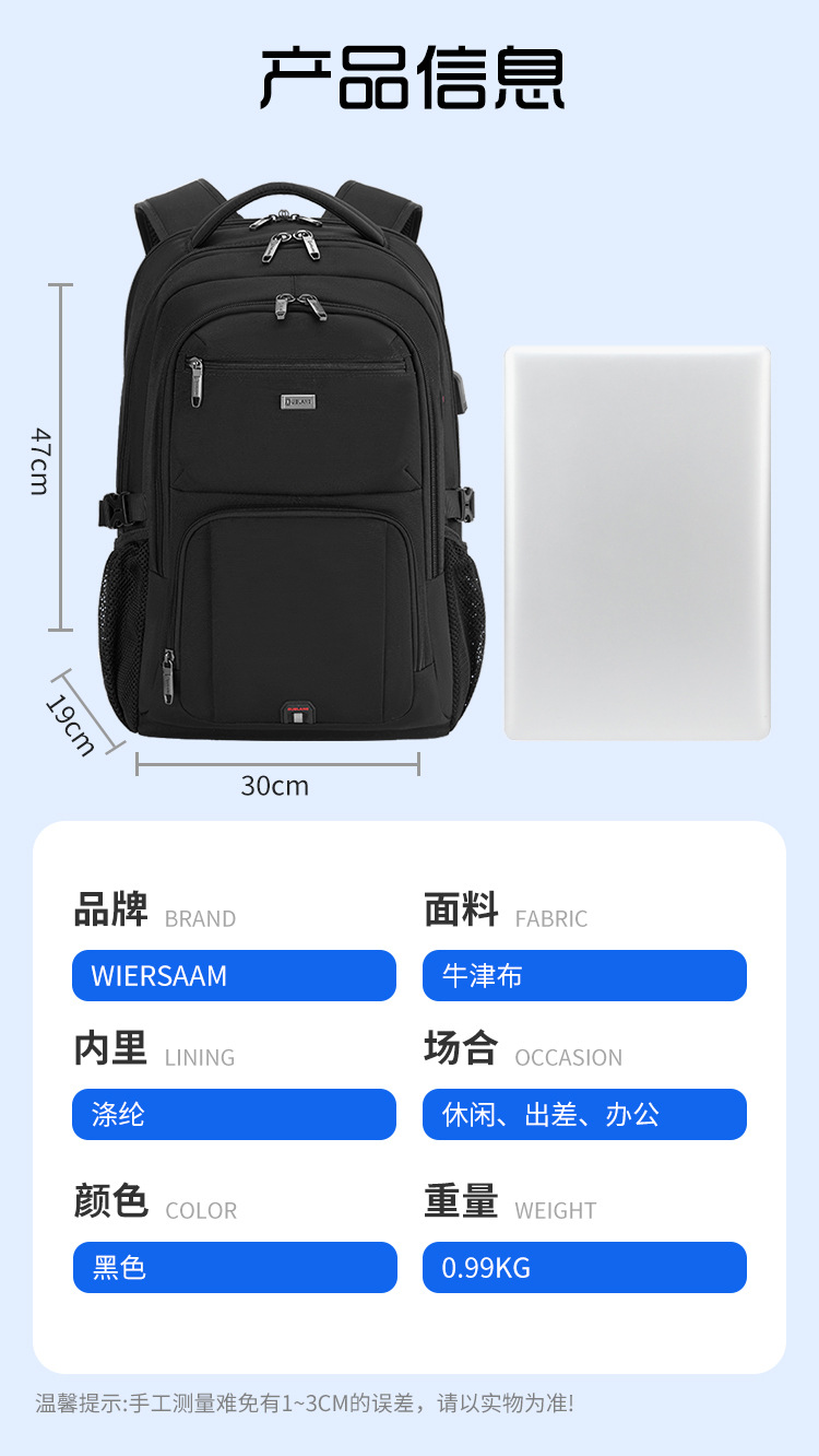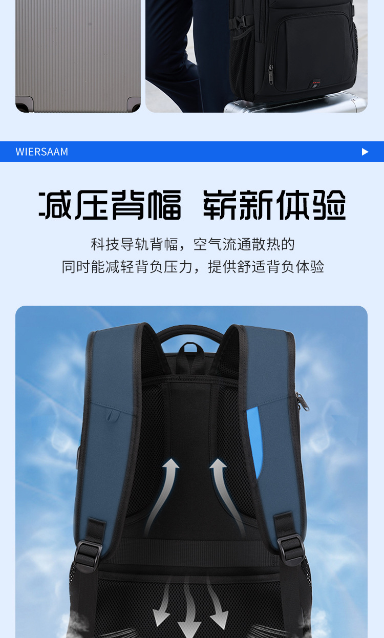 남성용 대용량 백팩 방수 출장용 컴퓨터 가방 중고등학생 책가방 등받이 패드 여행 출퇴근용