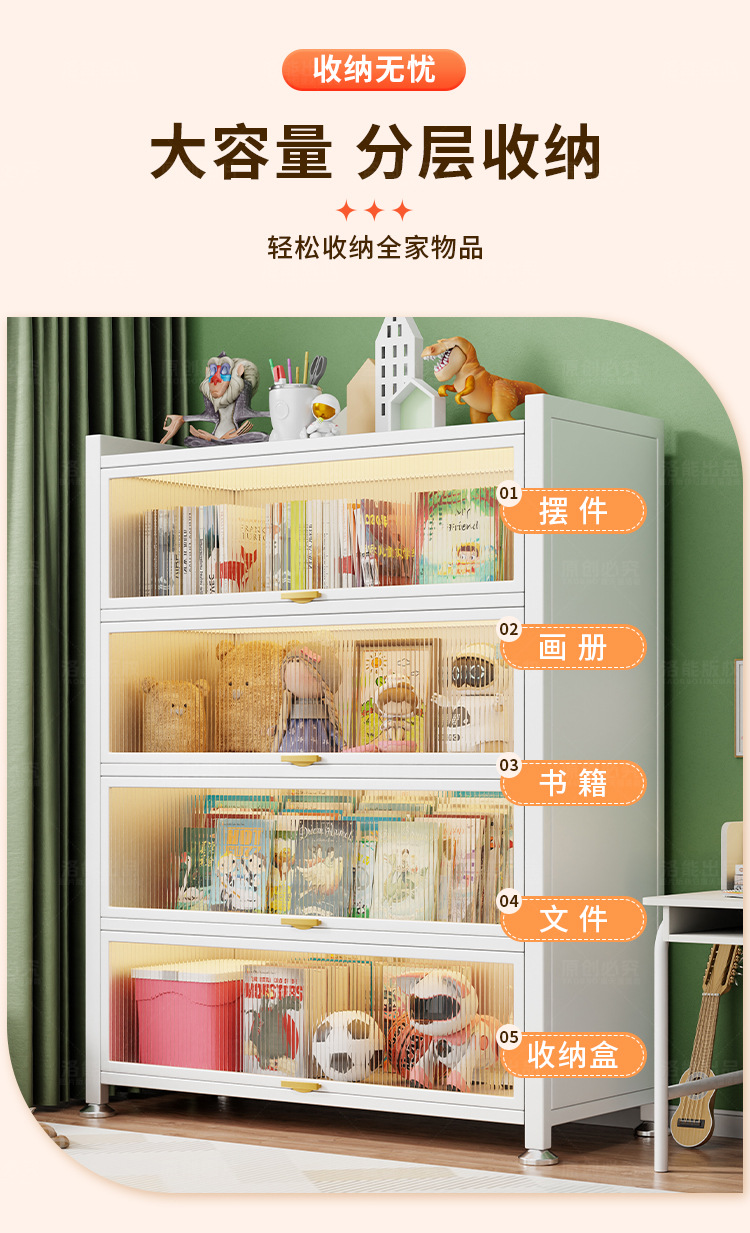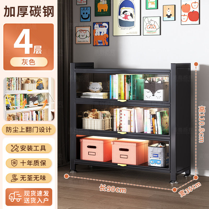 강철 책장 다층 방진 어린이 책장 바닥에서 이동식 보관함 거실 침실 다기능 보관 캐비닛
