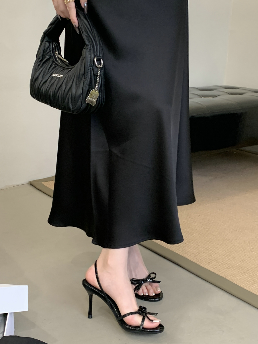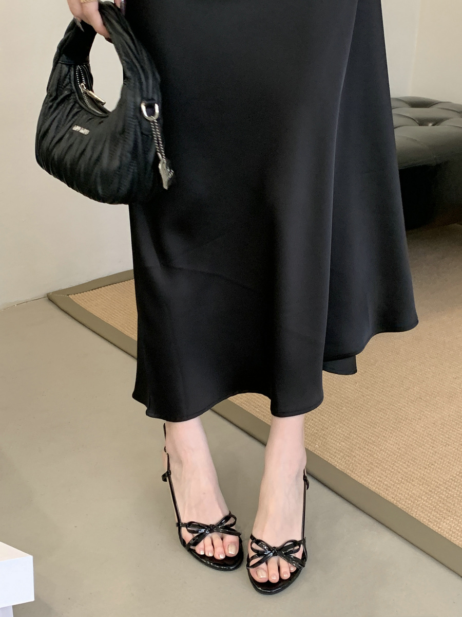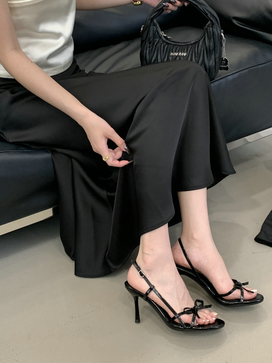 1399-2~2025 여름 신작 여성용 리본 오픈 토 프렌치 스타일 하이힐 샌들