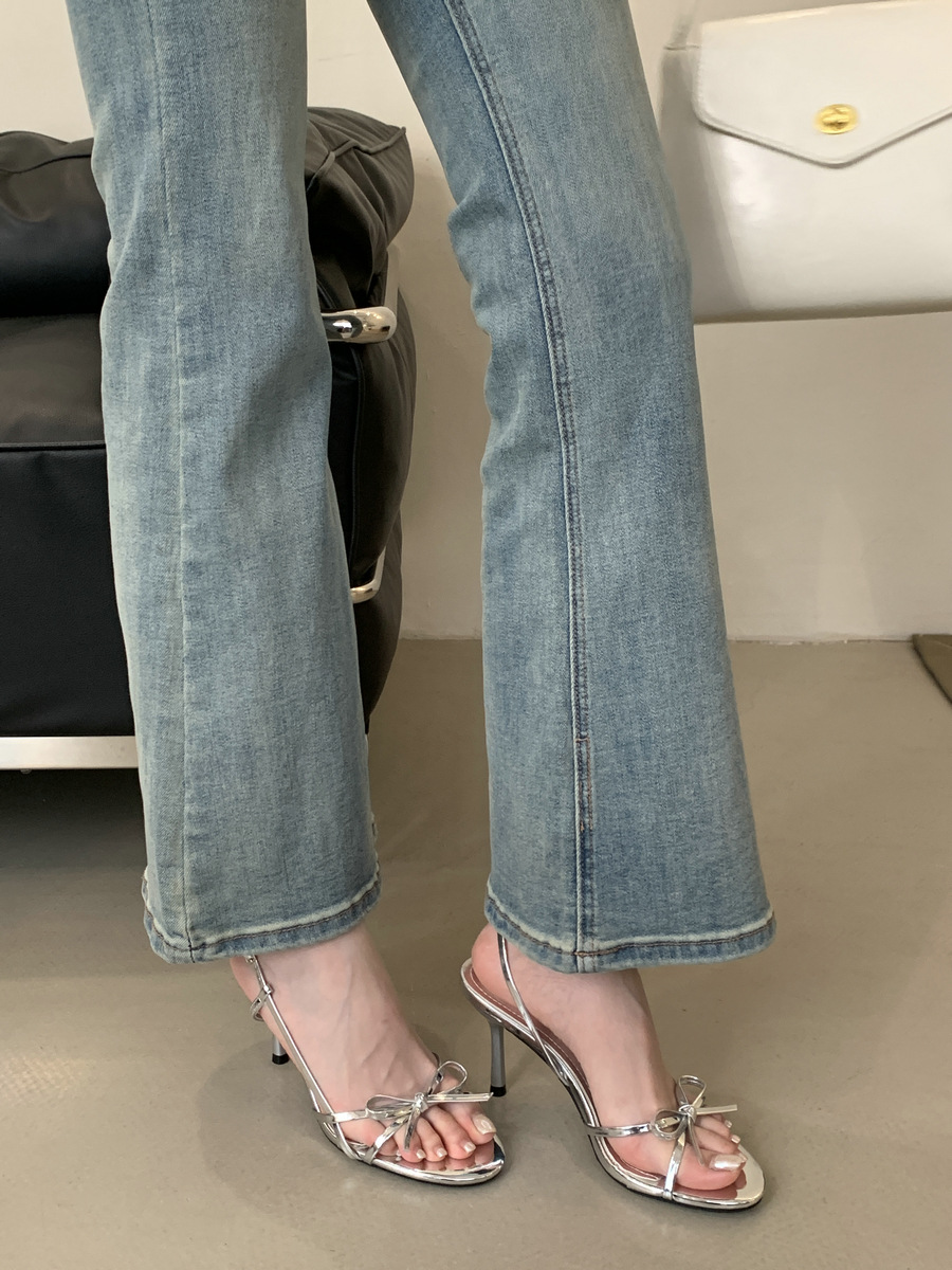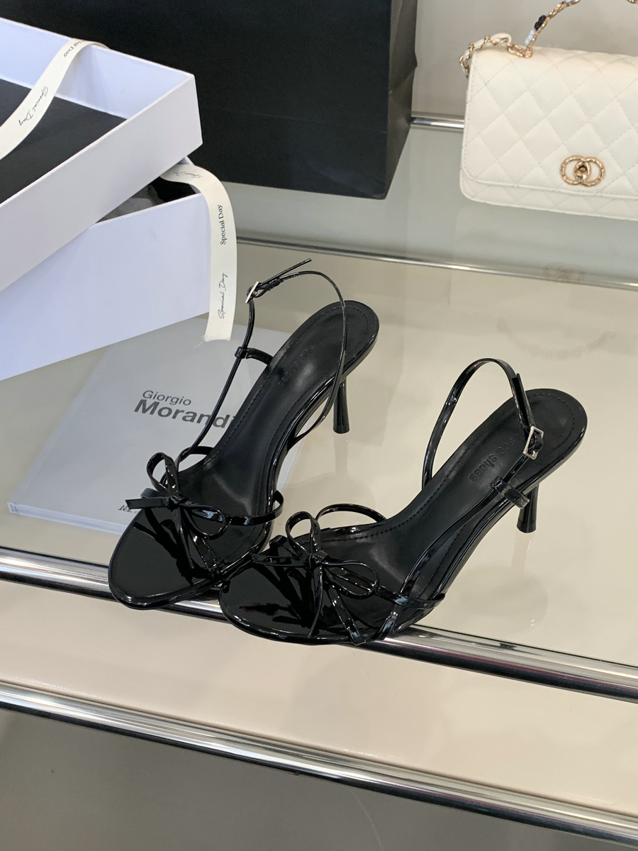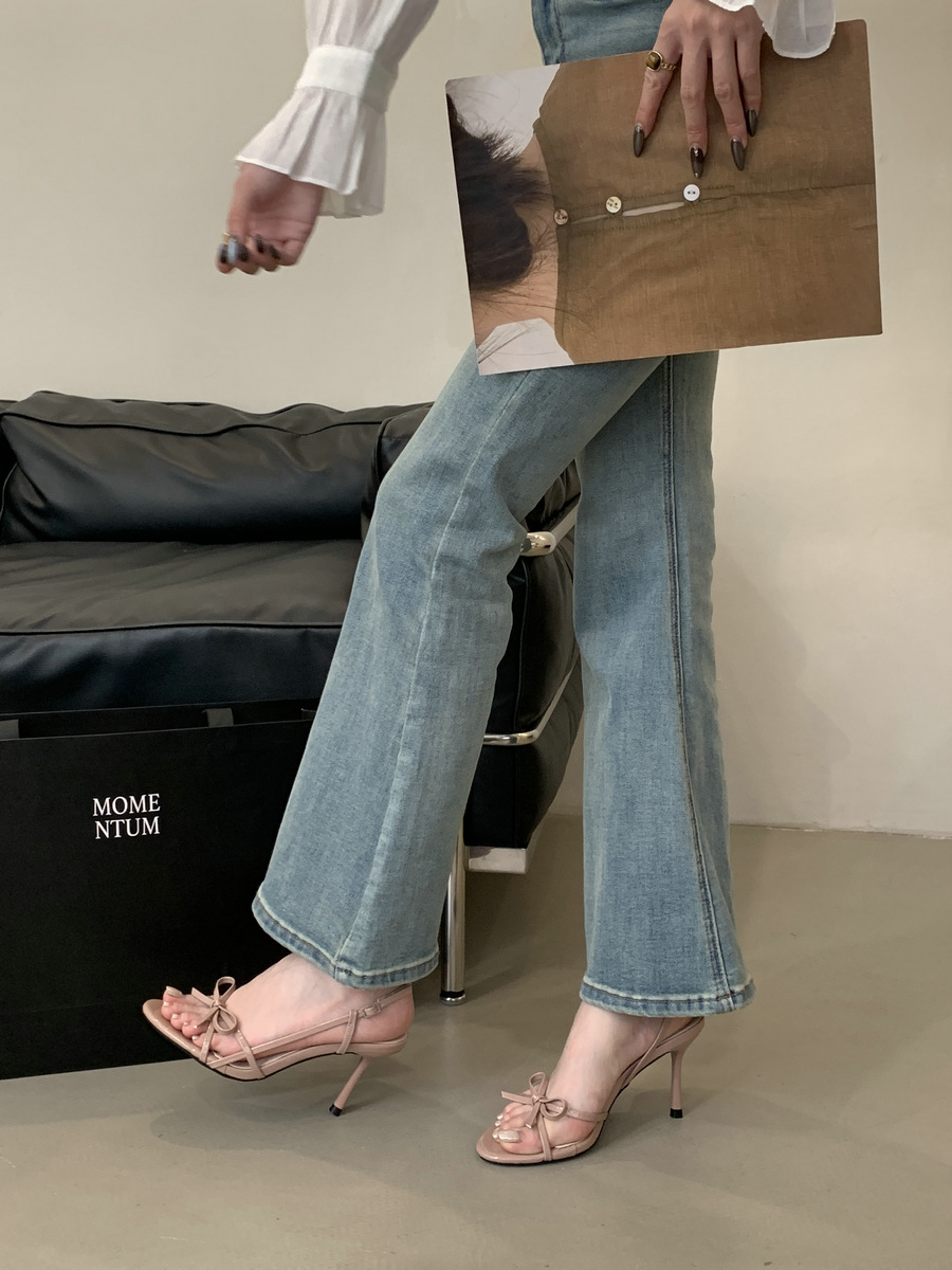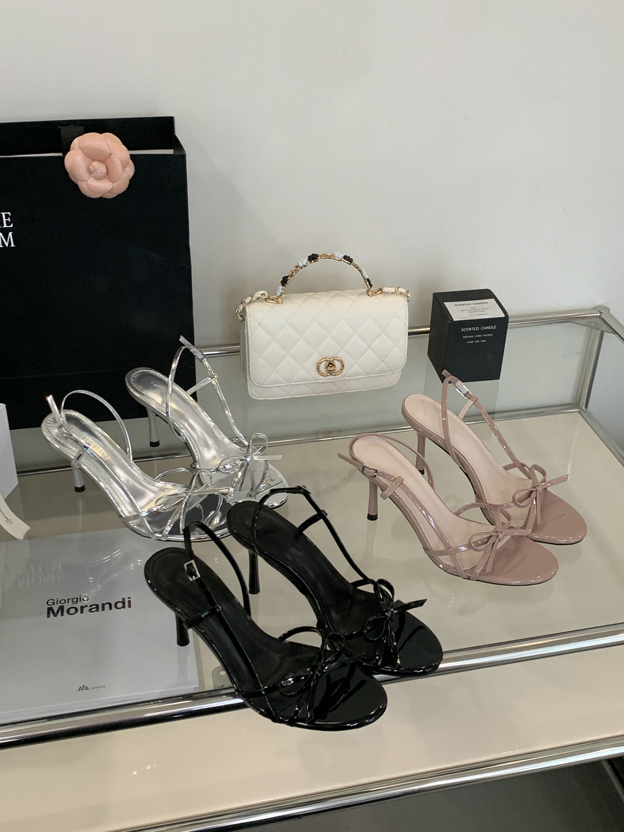 1399-2~2025 여름 신작 여성용 리본 오픈 토 프렌치 스타일 하이힐 샌들스토어 가기