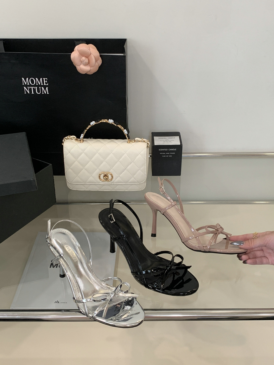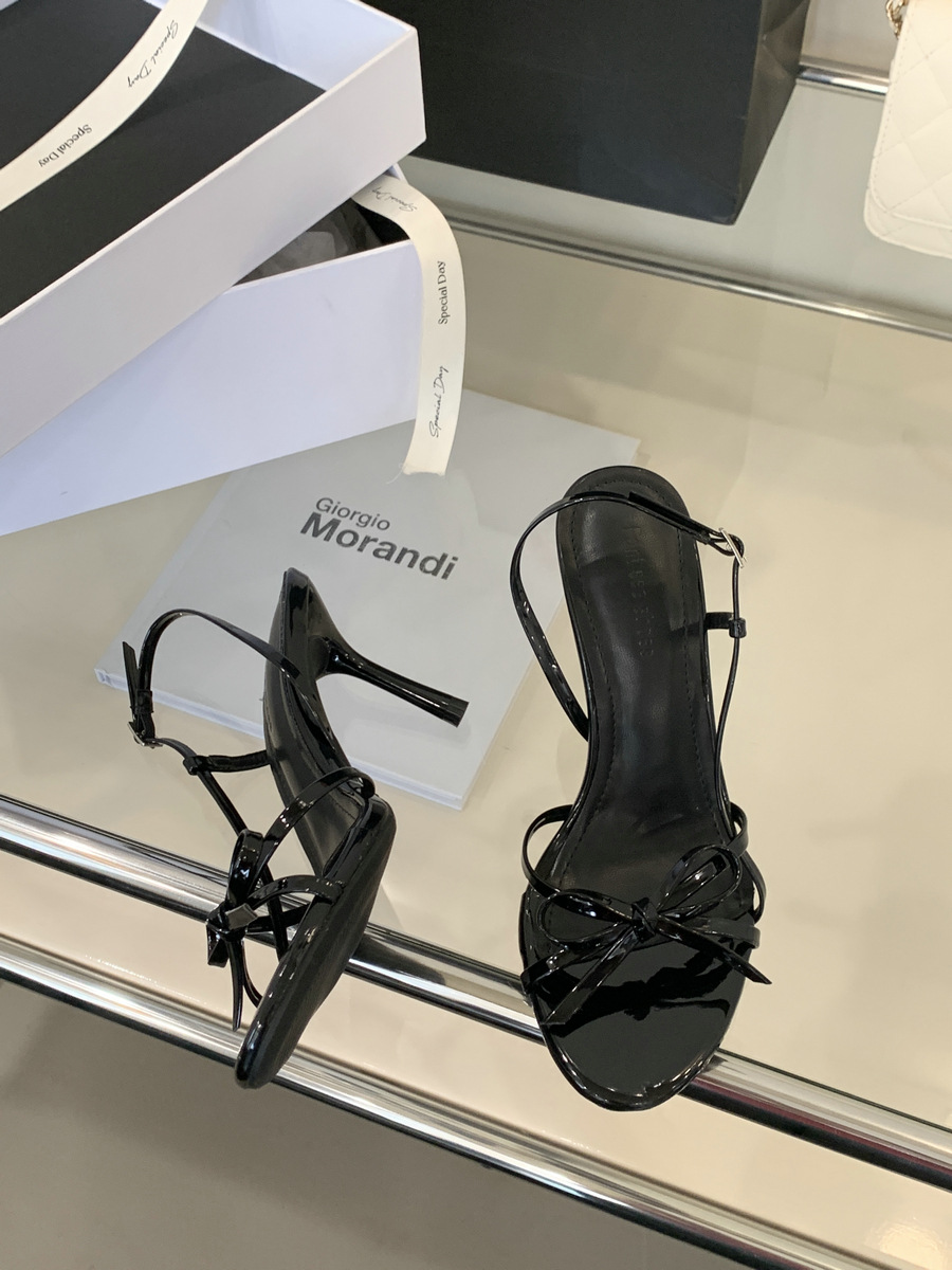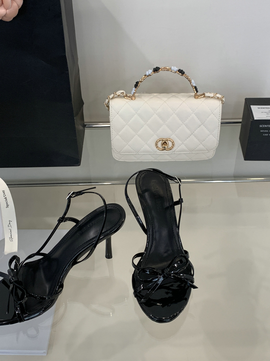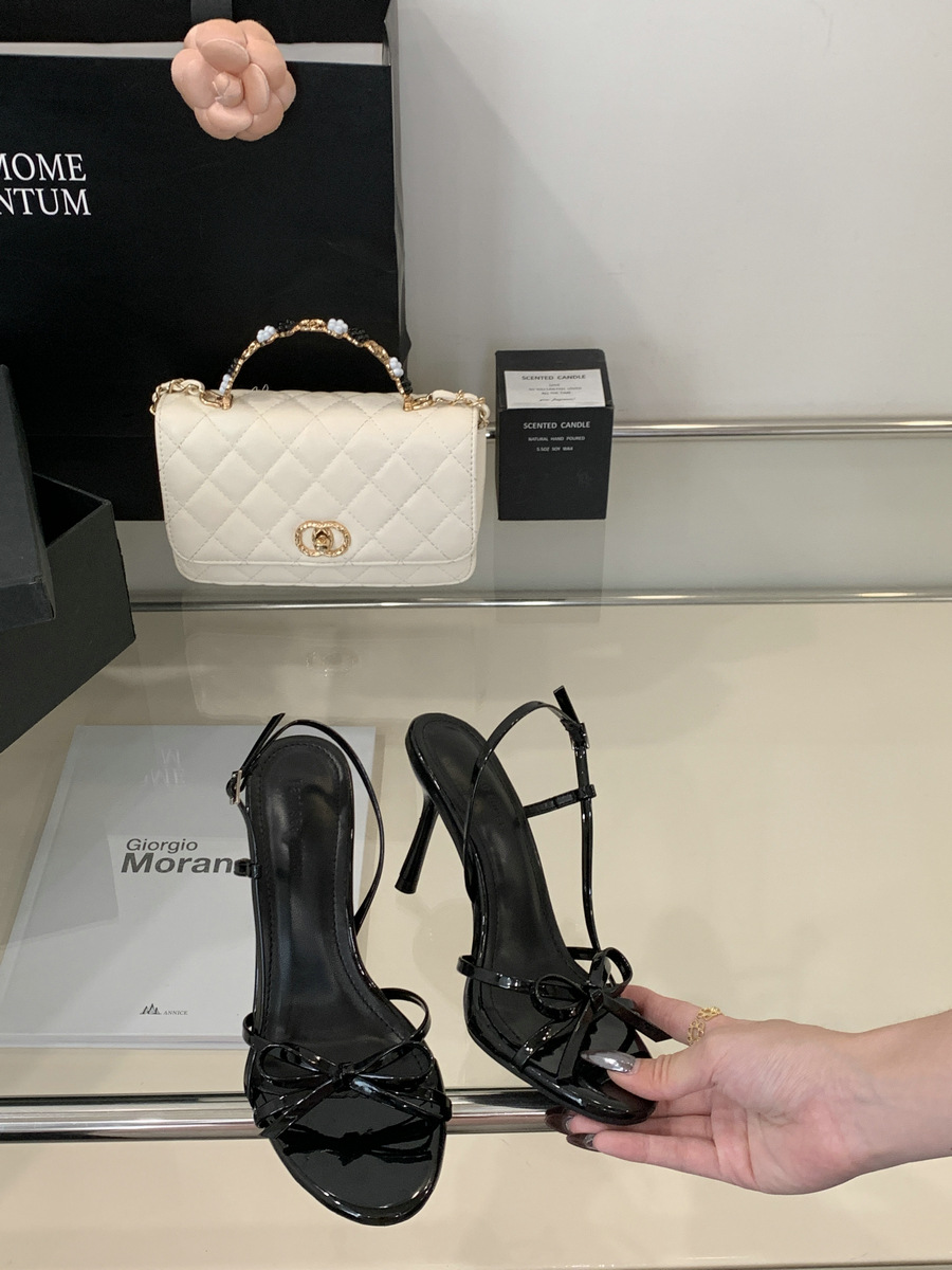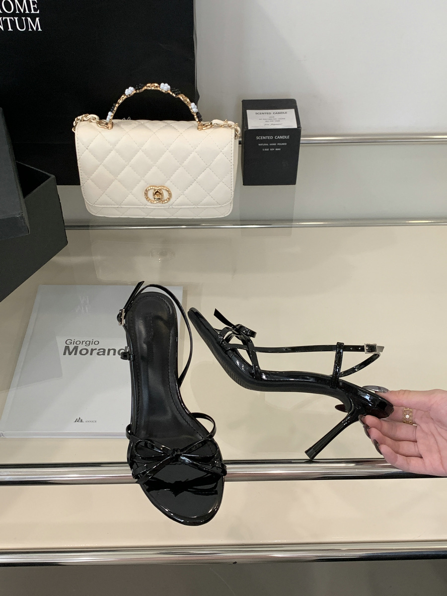 1399-2~2025 여름 신작 여성용 리본 오픈 토 프렌치 스타일 하이힐 샌들스토어 가기
