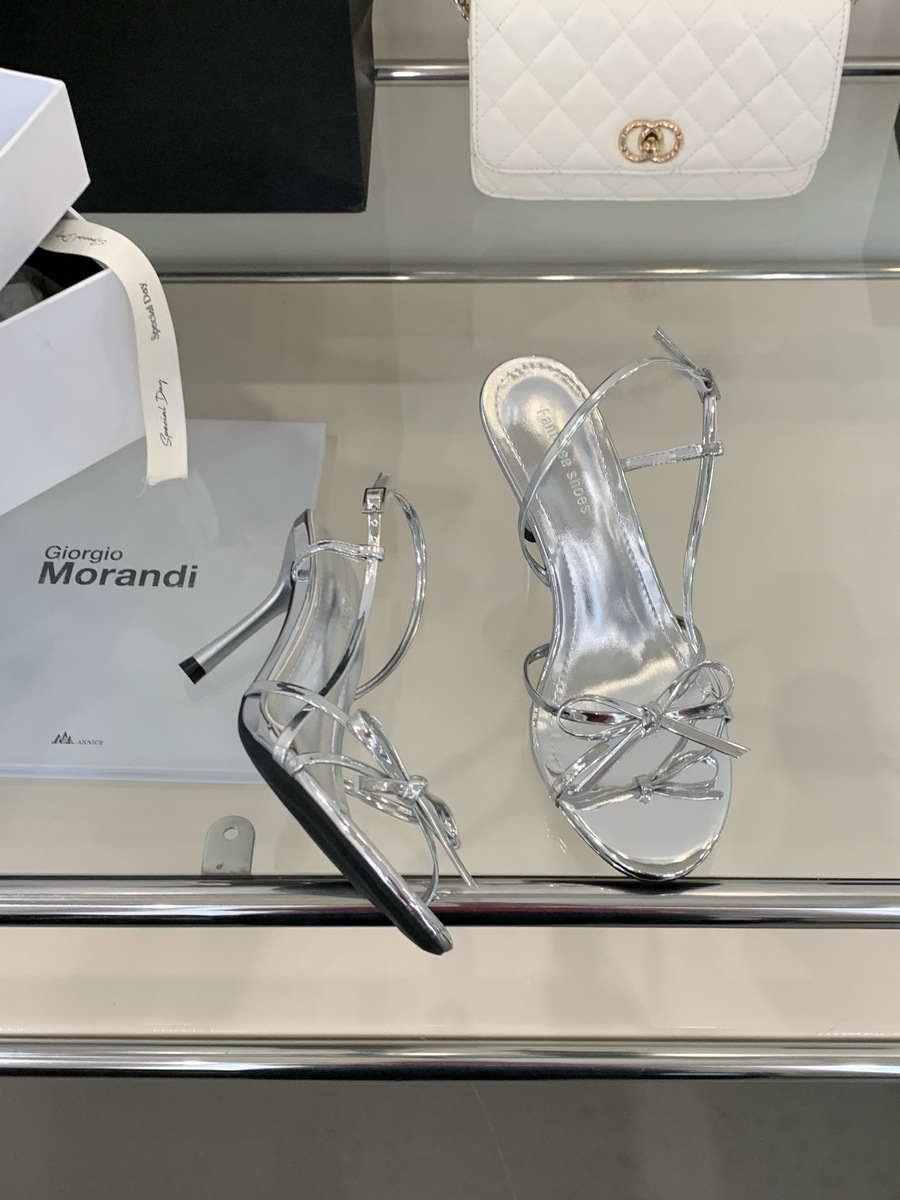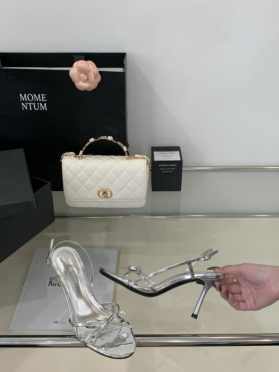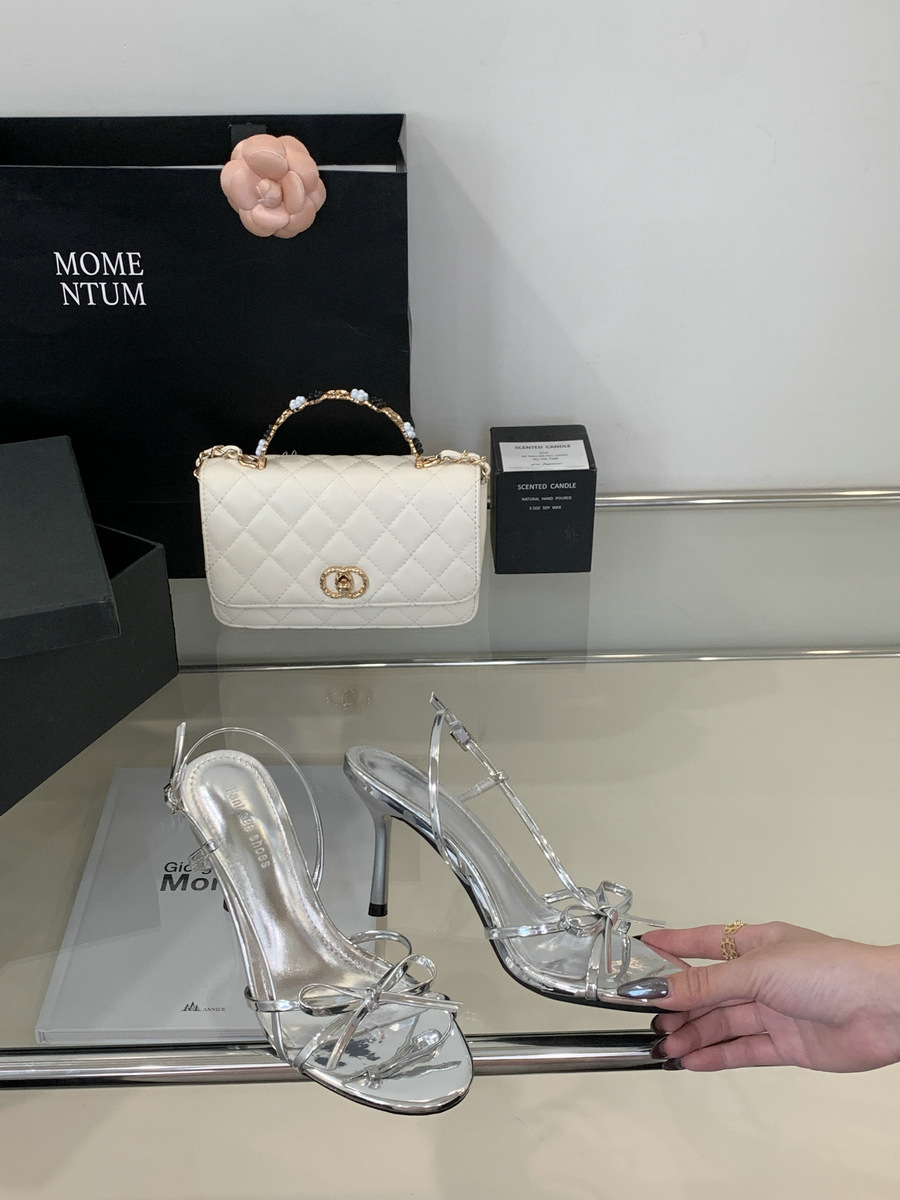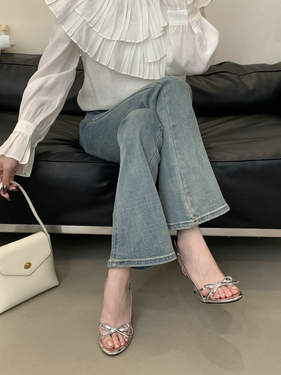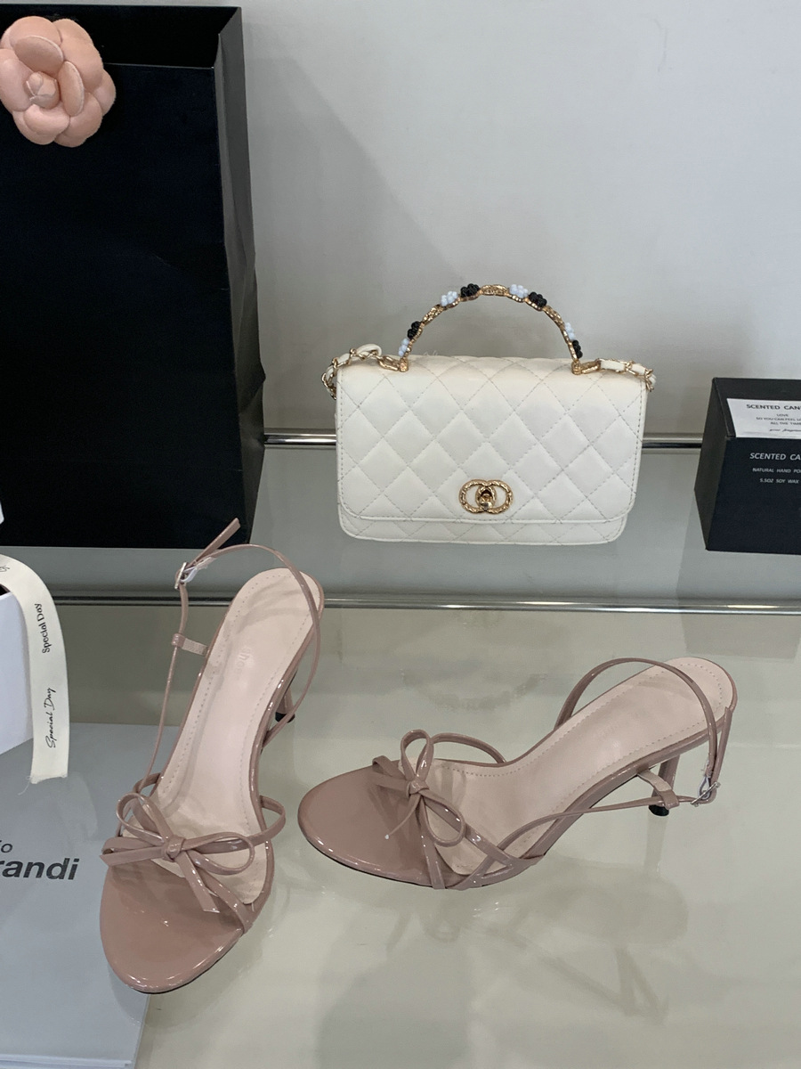 1399-2~2025 여름 신작 여성용 리본 오픈 토 프렌치 스타일 하이힐 샌들스토어 가기