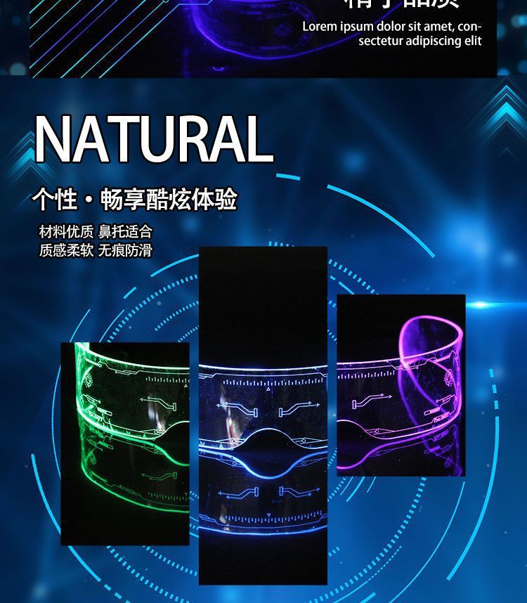충전식 공상 과학 발광 안경, 미래 기술 안경, 생일 인터넷 연예인 바 사진 디스코 안경, 인기 판매 모델