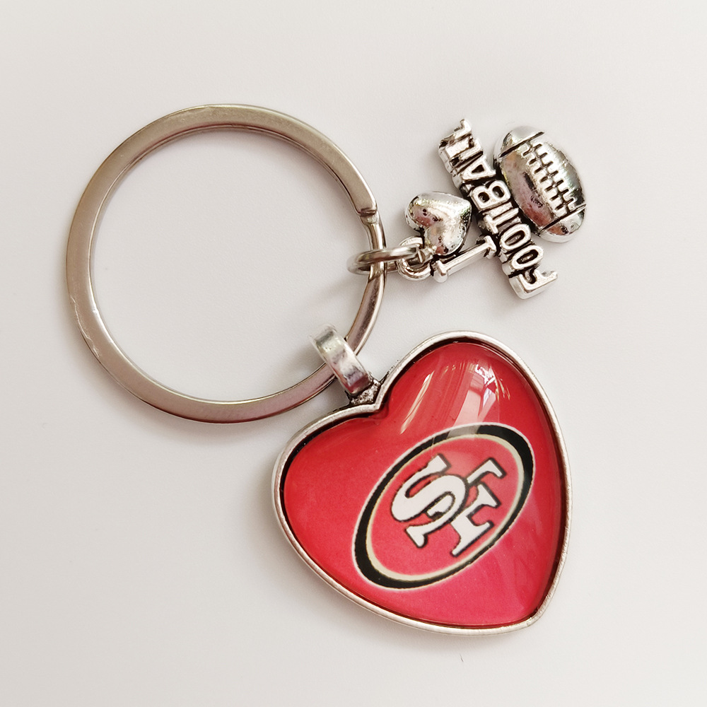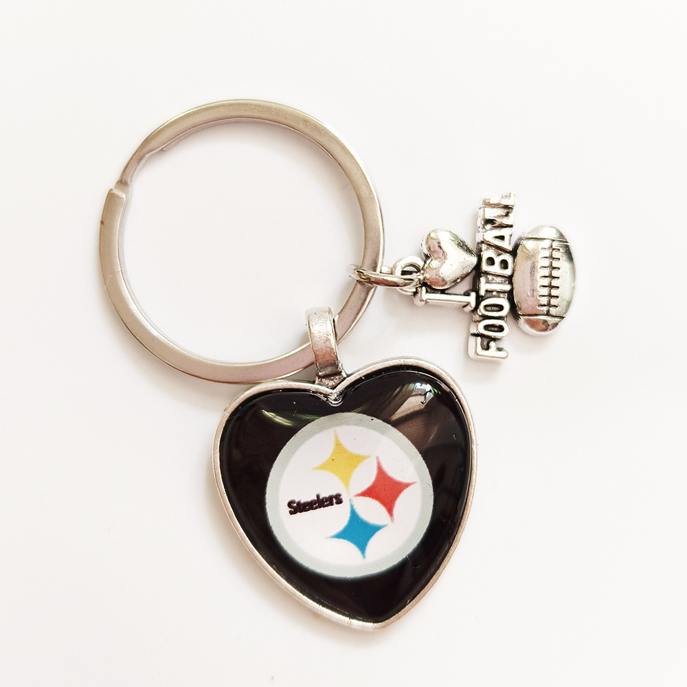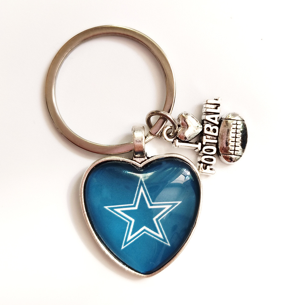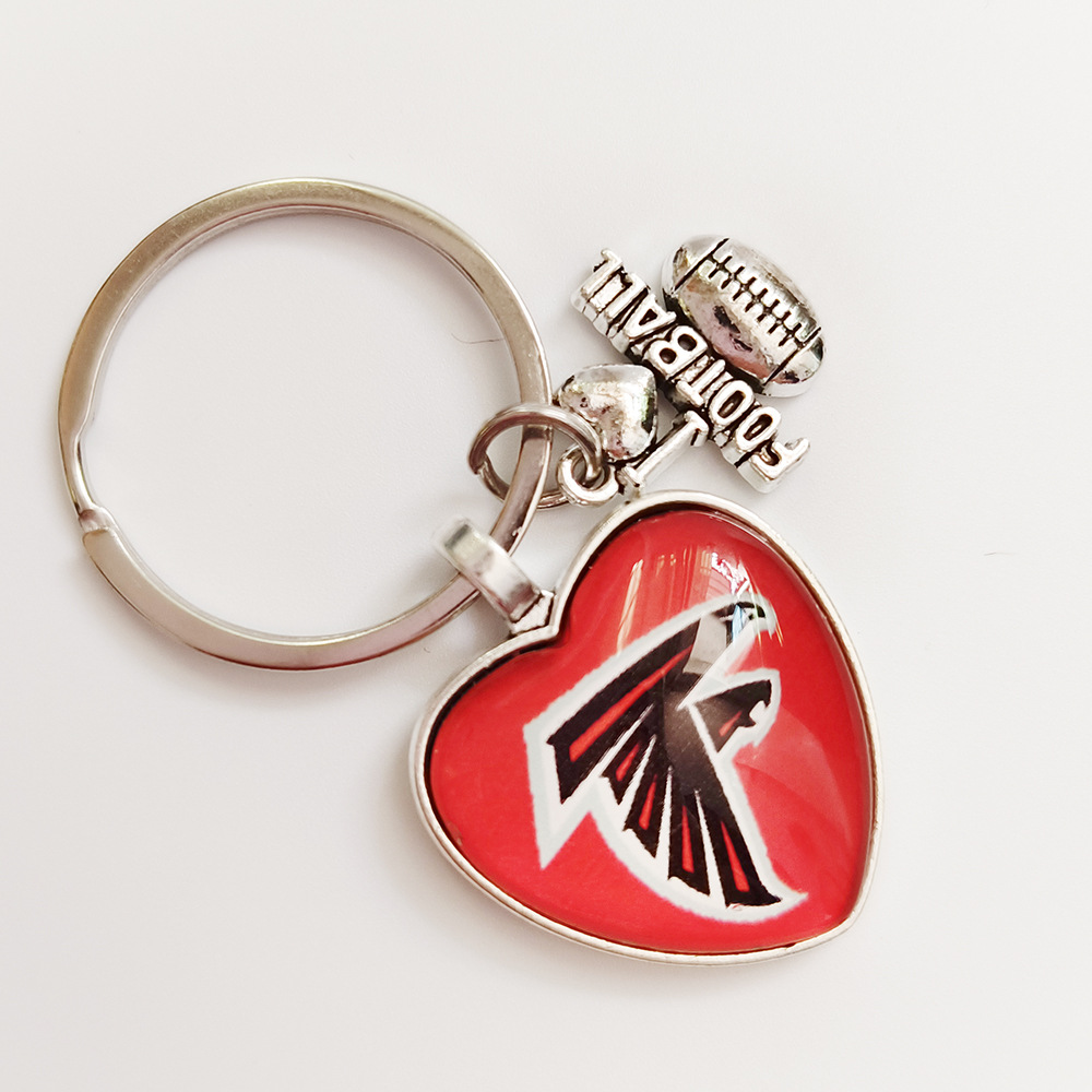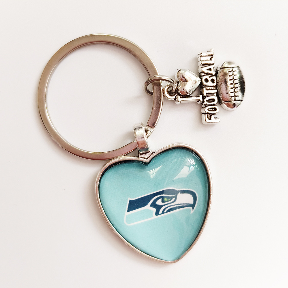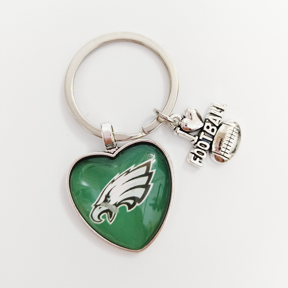 도매 스팟 25mm 복숭아 하트 NFL 미식 축구 팀 로고 이글 타임 보석 키 체인스토어 가기