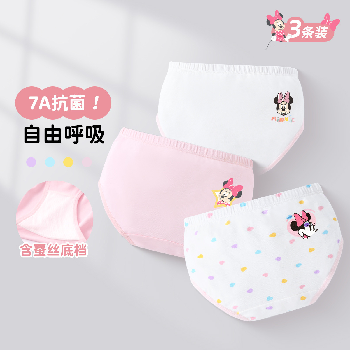 디즈니 7A 항균 뽕나무 실크 바닥 가랑이 3팩 여아 속옷 여름 얇은 중대형 아동 복서 팬티