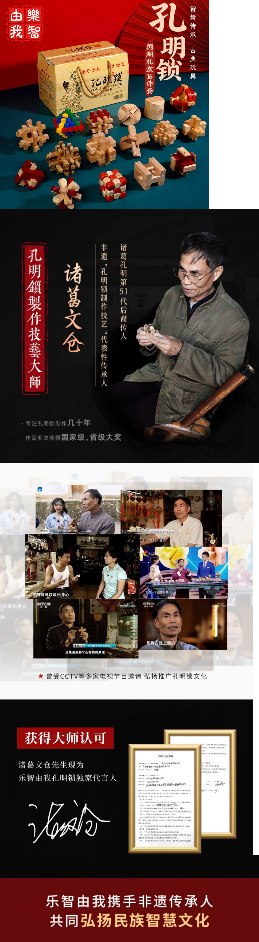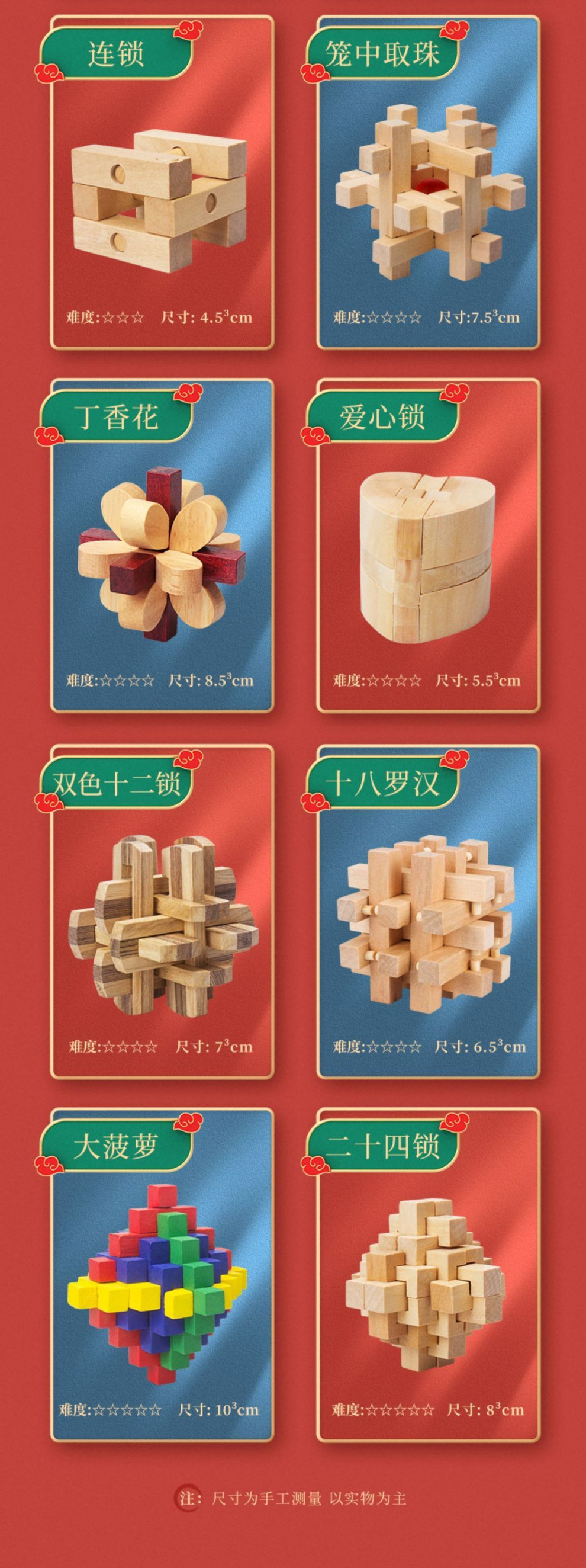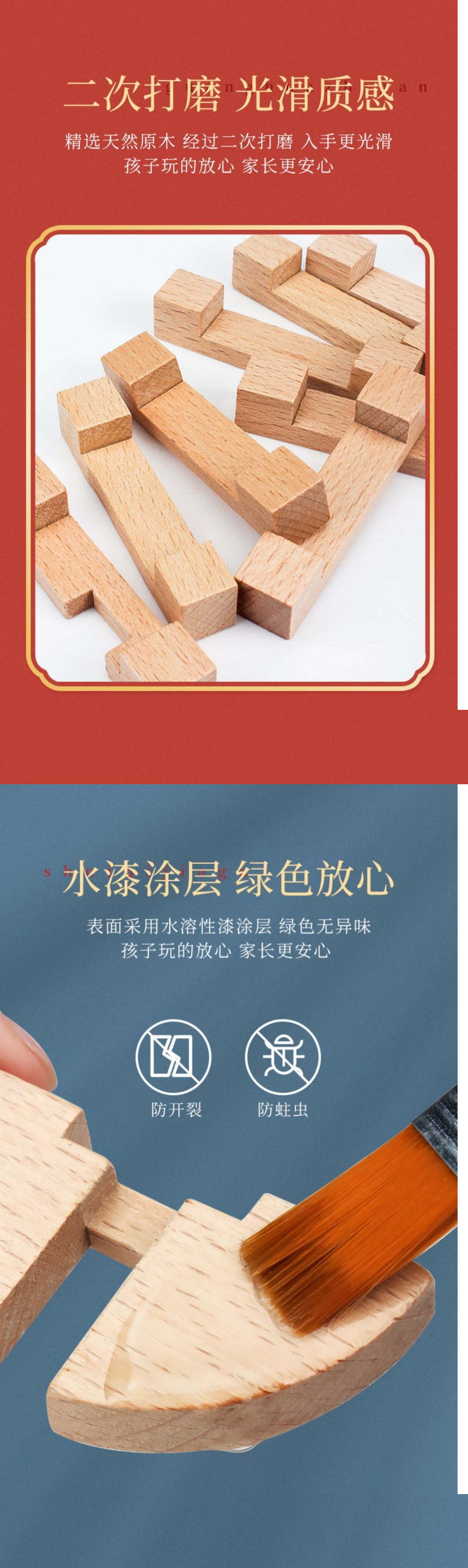 Kongming Lock Luban Lock 초등학생을위한 지능형 링 해제 나무 빌딩 블록 9 링 교육 장난감 전체 세트