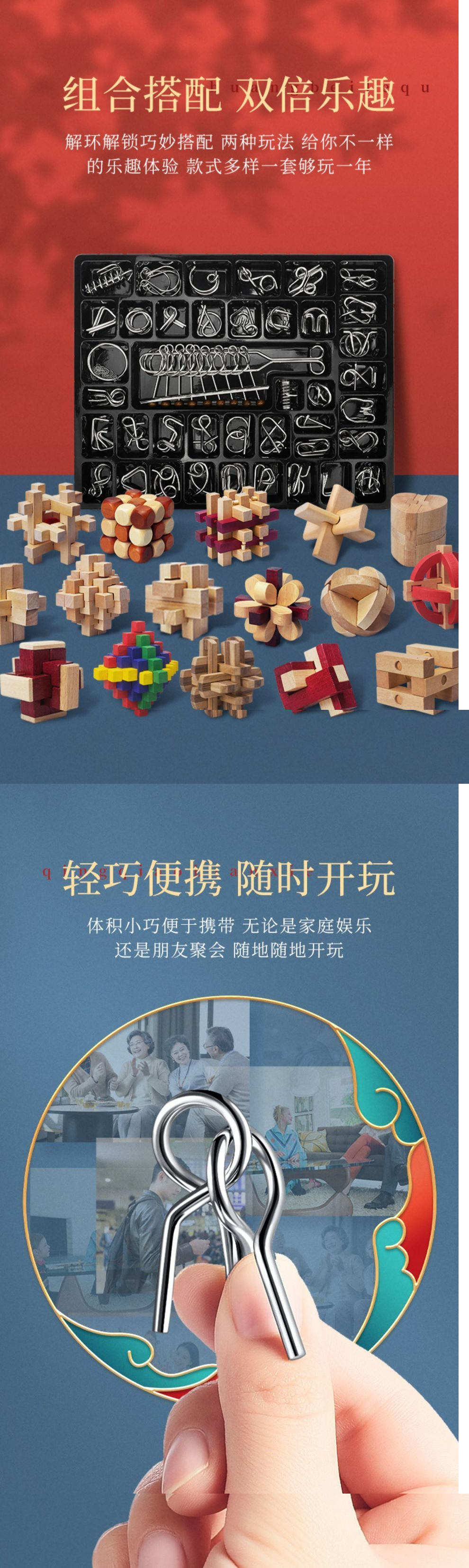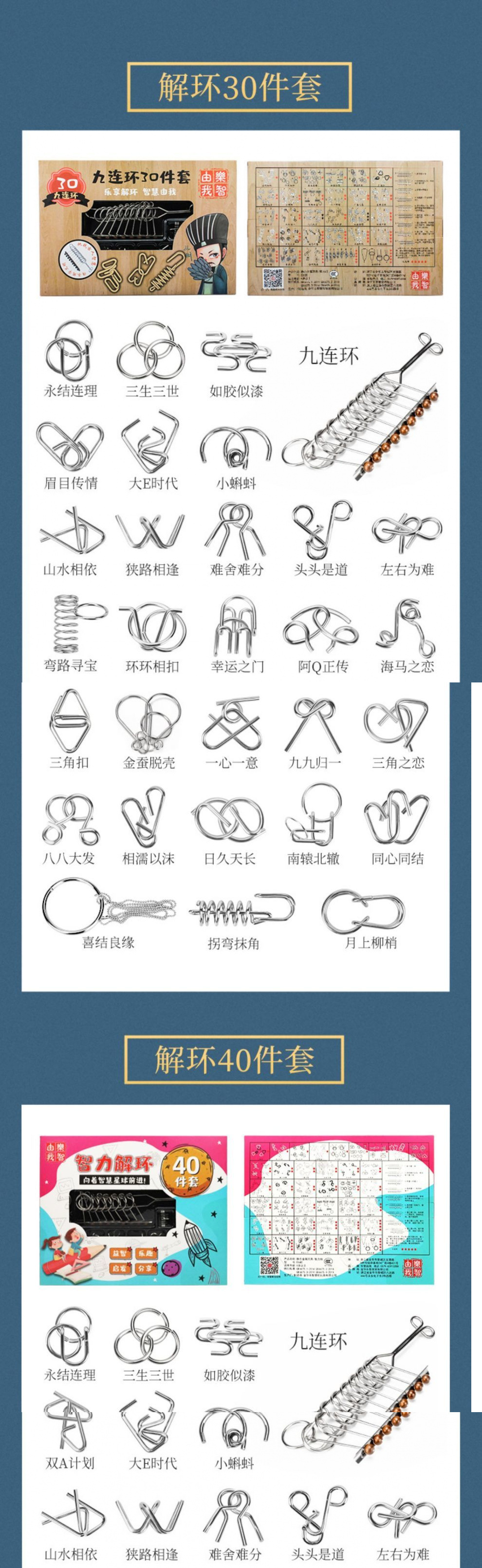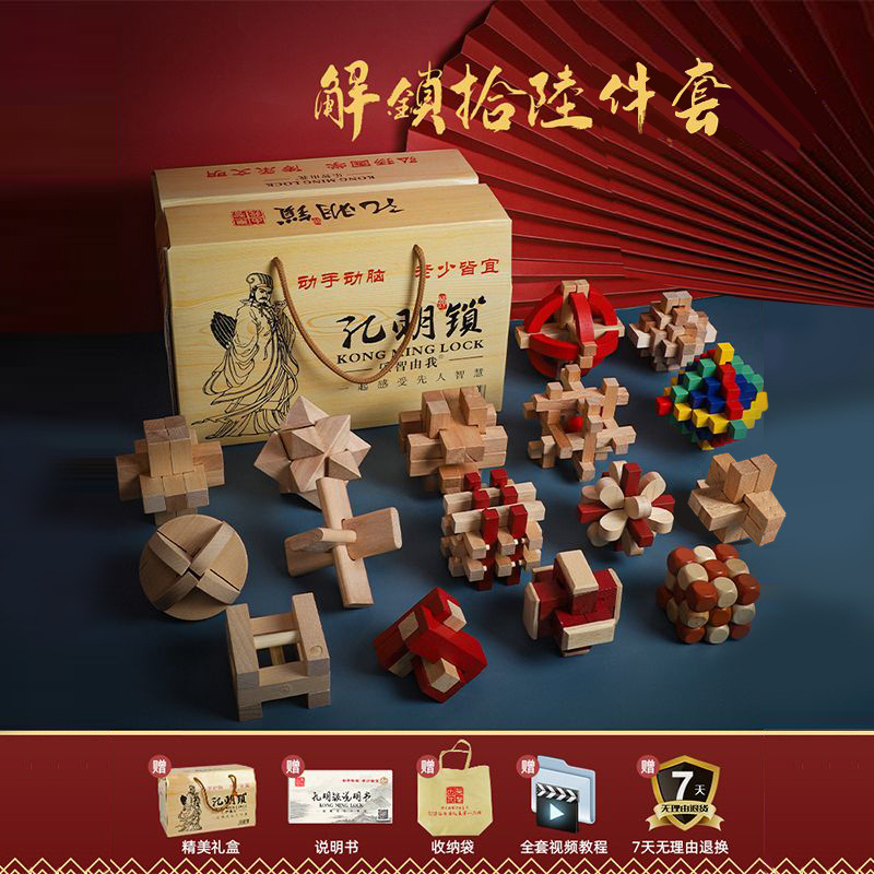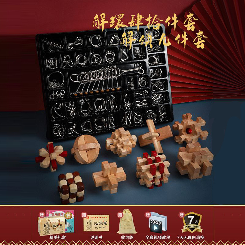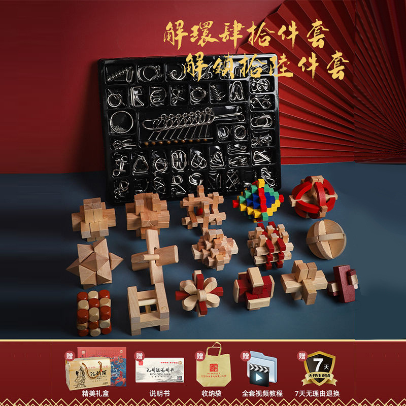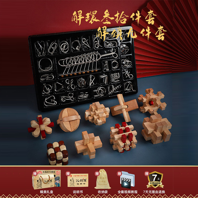 Kongming Lock Luban Lock 초등학생을위한 지능형 링 해제 나무 빌딩 블록 9 링 교육 장난감 전체 세트스토어 가기