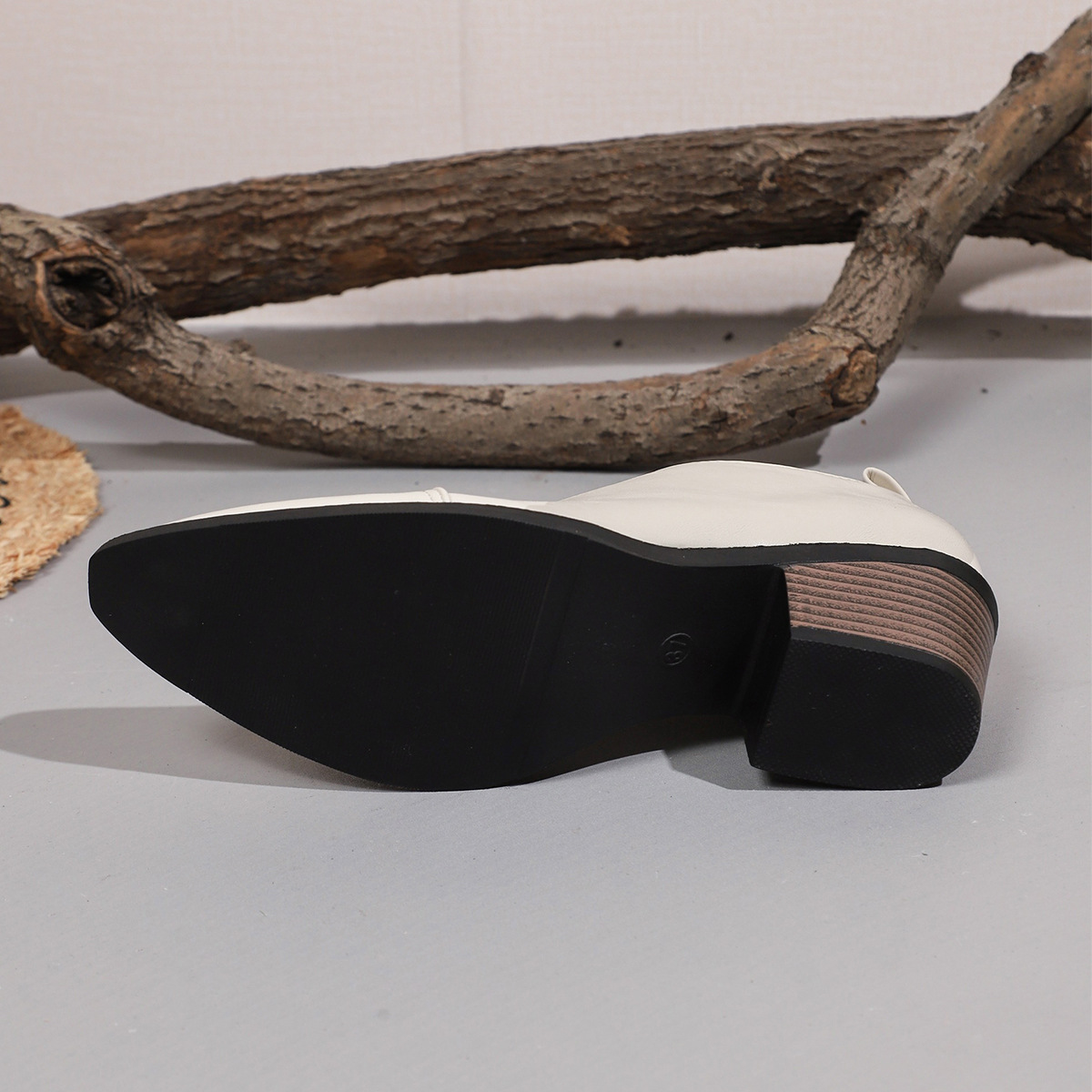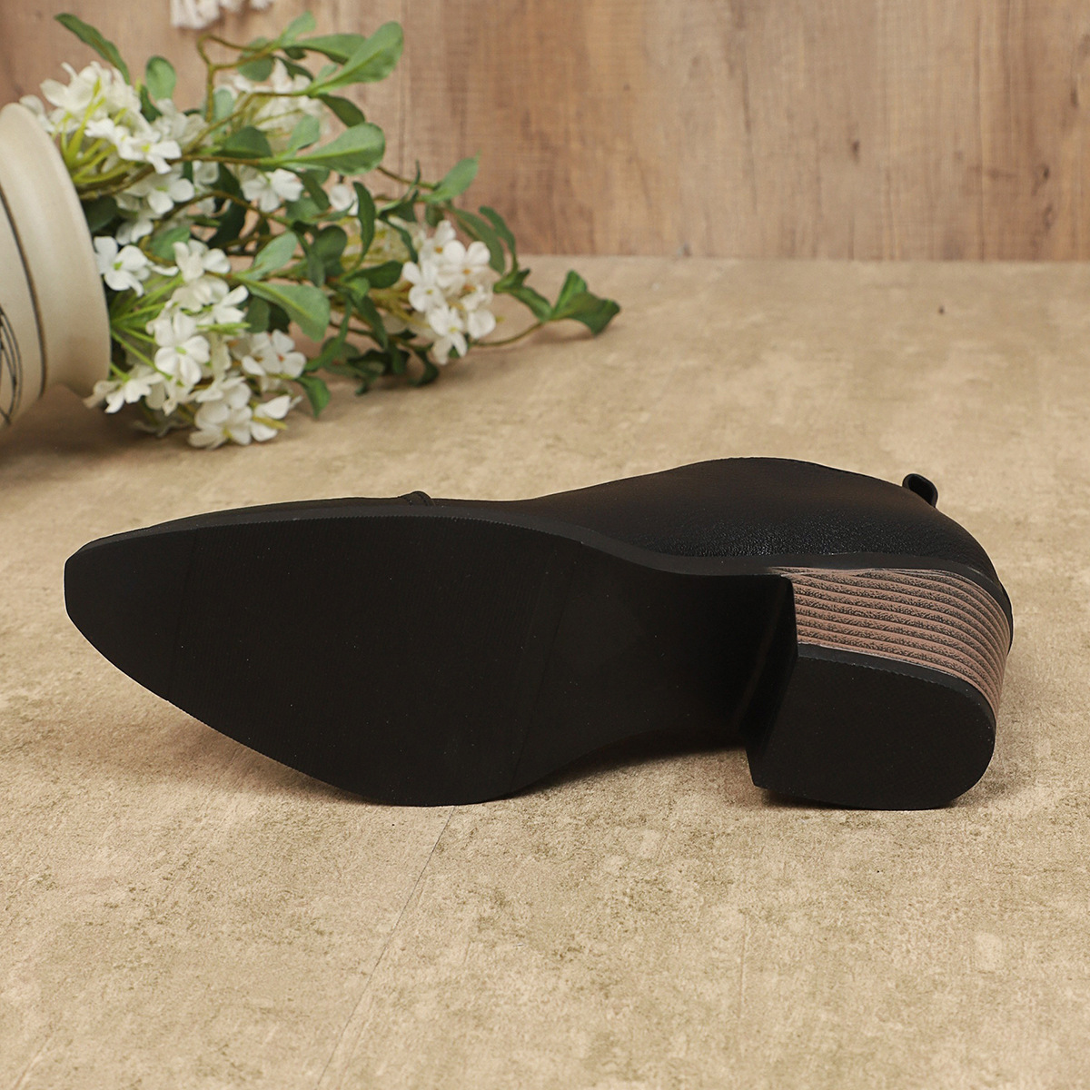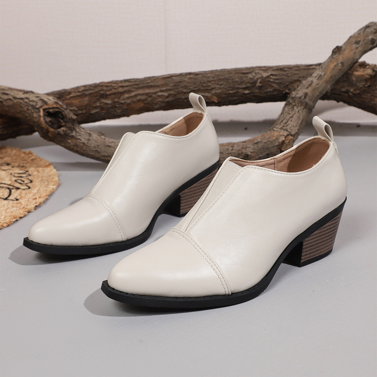 여성용 대형 두꺼운 굽 싱글 슈즈 유럽과 미국의 국경 간 캐주얼 두꺼운 굽 대외 무역 신발 43 사이즈 얕은 중간 굽 뾰족한 작은 가죽 신발스토어 가기