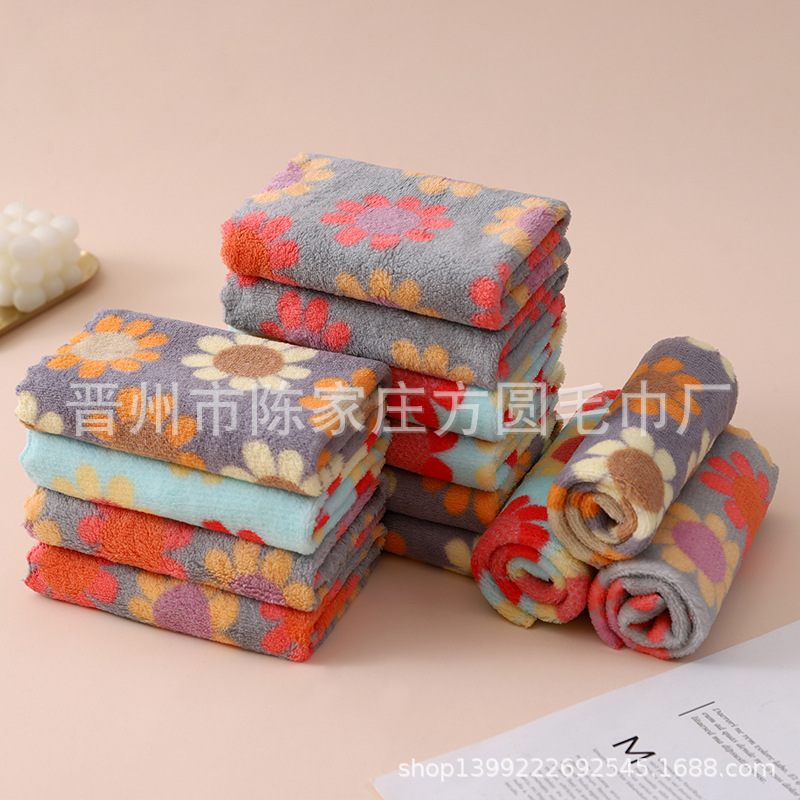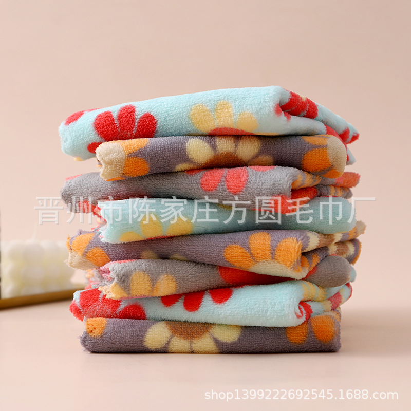 국경 간 산호 벨벳 사각형 수건 어린이 유치원 해바라기 작은 수건 흡수성 청소 주방 핸드 타월 매점 배치스토어 가기