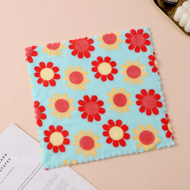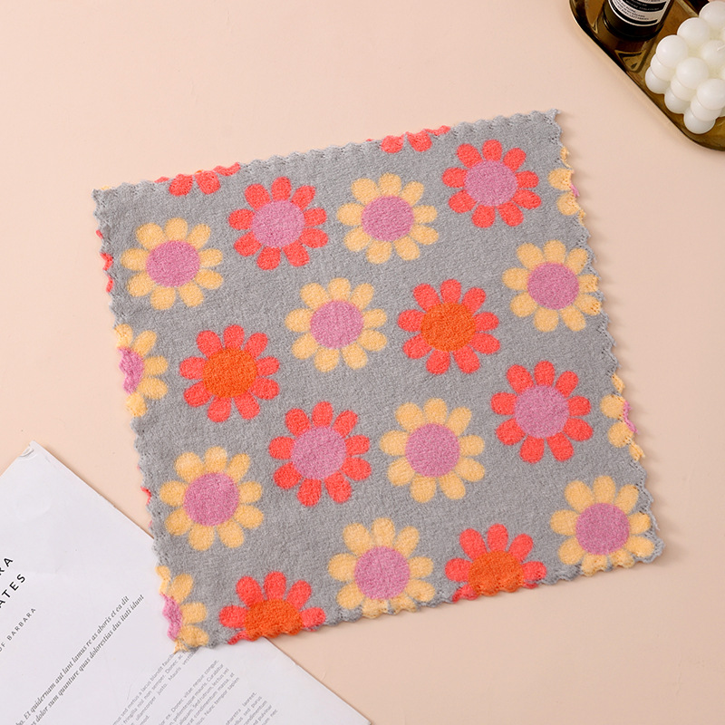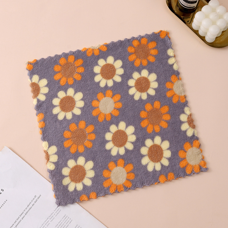국경 간 산호 벨벳 사각형 수건 어린이 유치원 해바라기 작은 수건 흡수성 청소 주방 핸드 타월 매점 배치