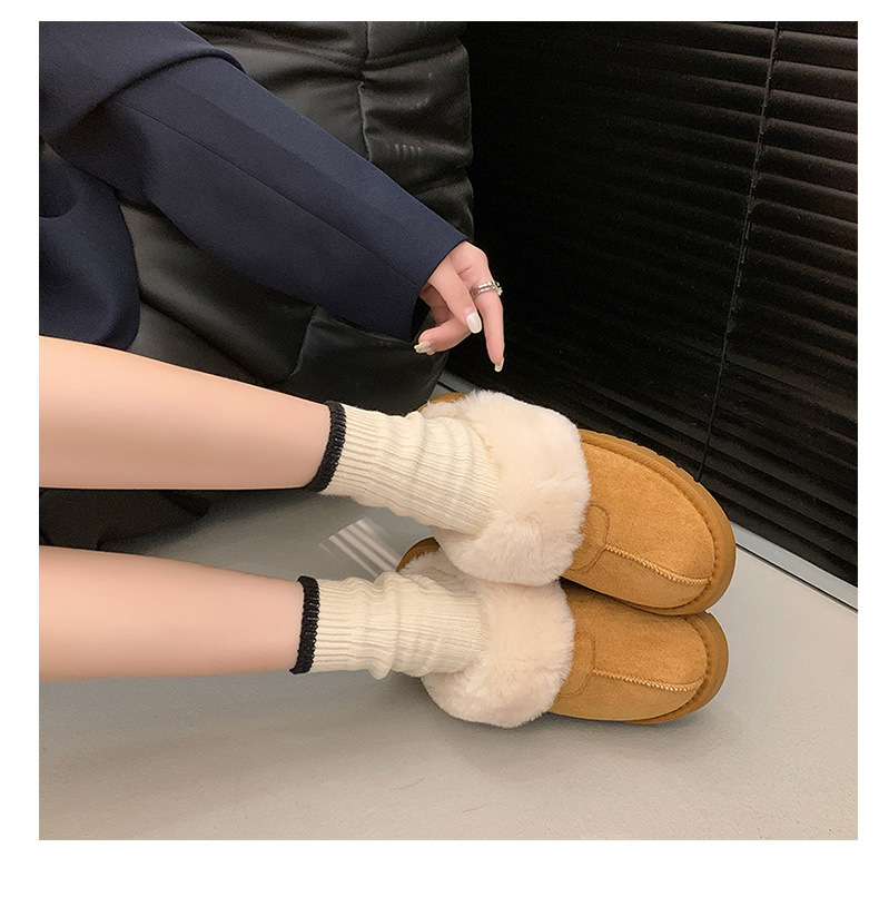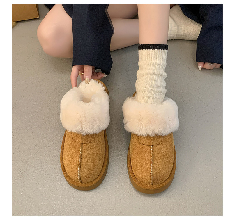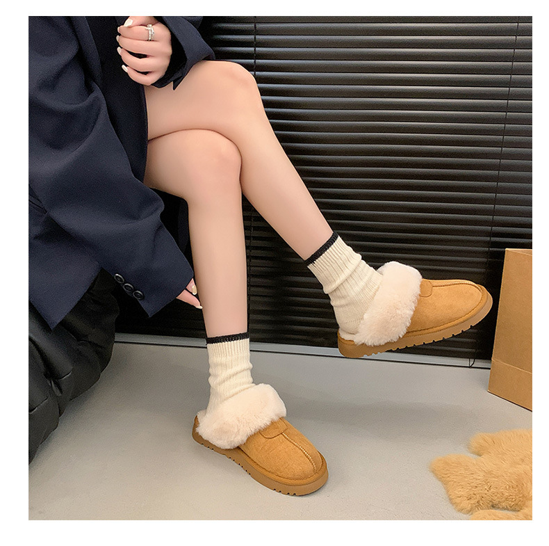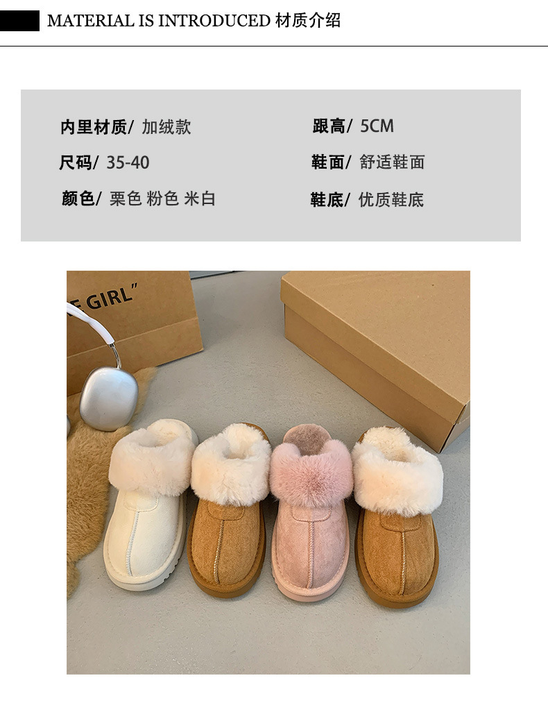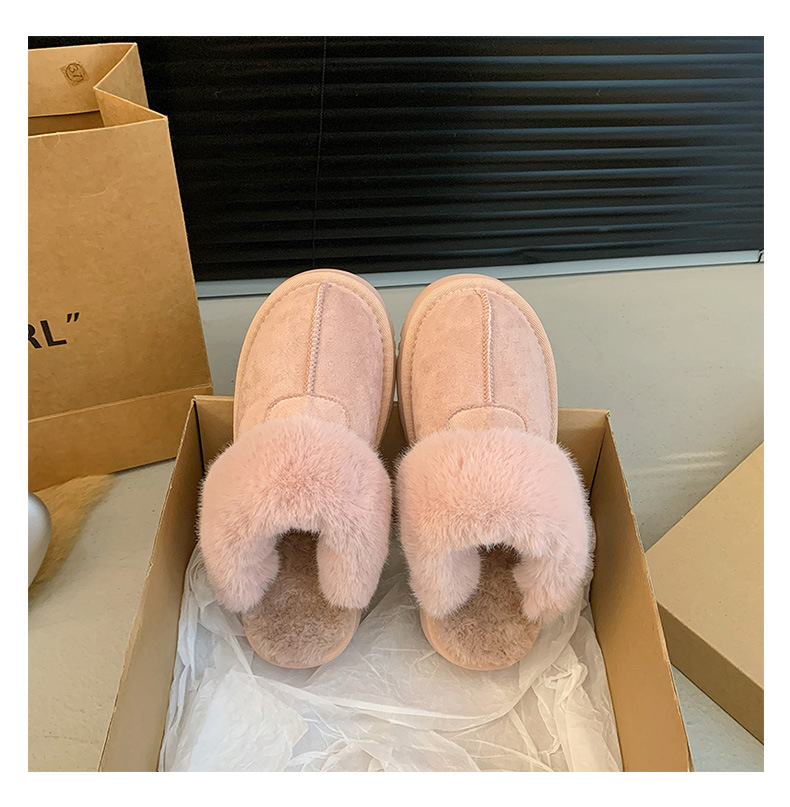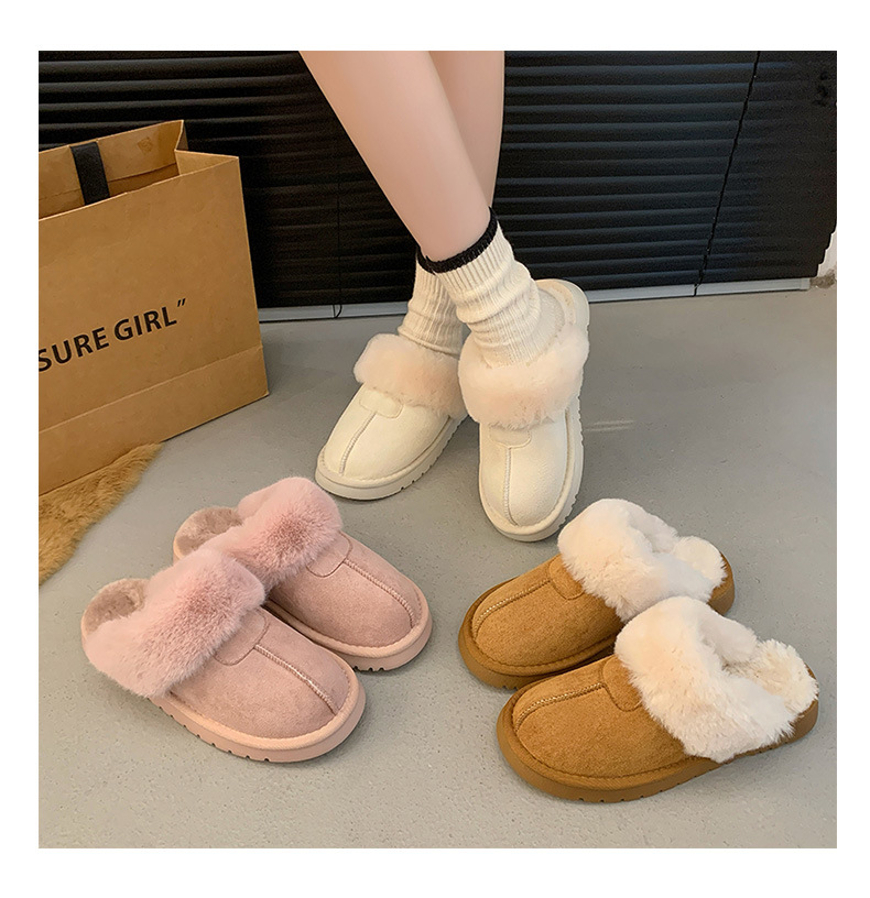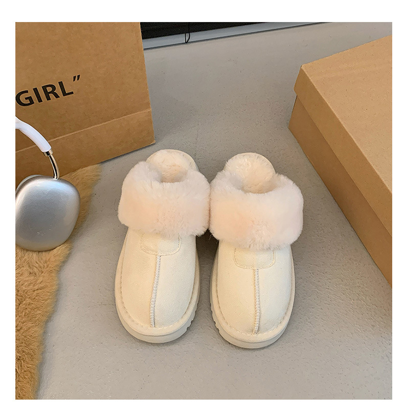 천종이와 같은 스타일의 퍼 일체형 여성용 토캡 퍼 슬리퍼, 플랫 바닥, 두꺼운 퍼 슬리퍼, 다용도, 따뜻한 아우터웨어스토어 가기