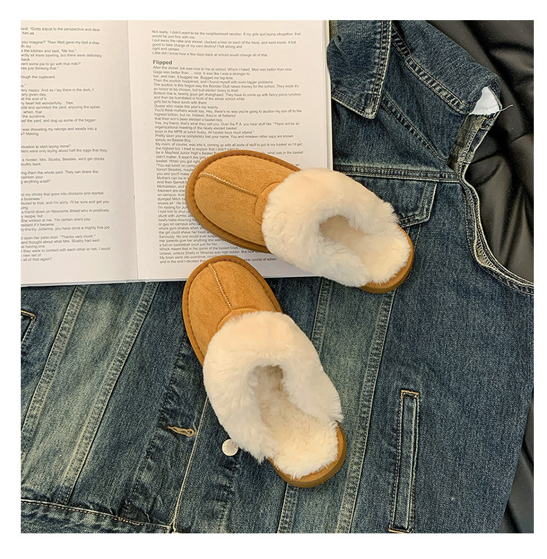 천종이와 같은 스타일의 퍼 일체형 여성용 토캡 퍼 슬리퍼, 플랫 바닥, 두꺼운 퍼 슬리퍼, 다용도, 따뜻한 아우터웨어