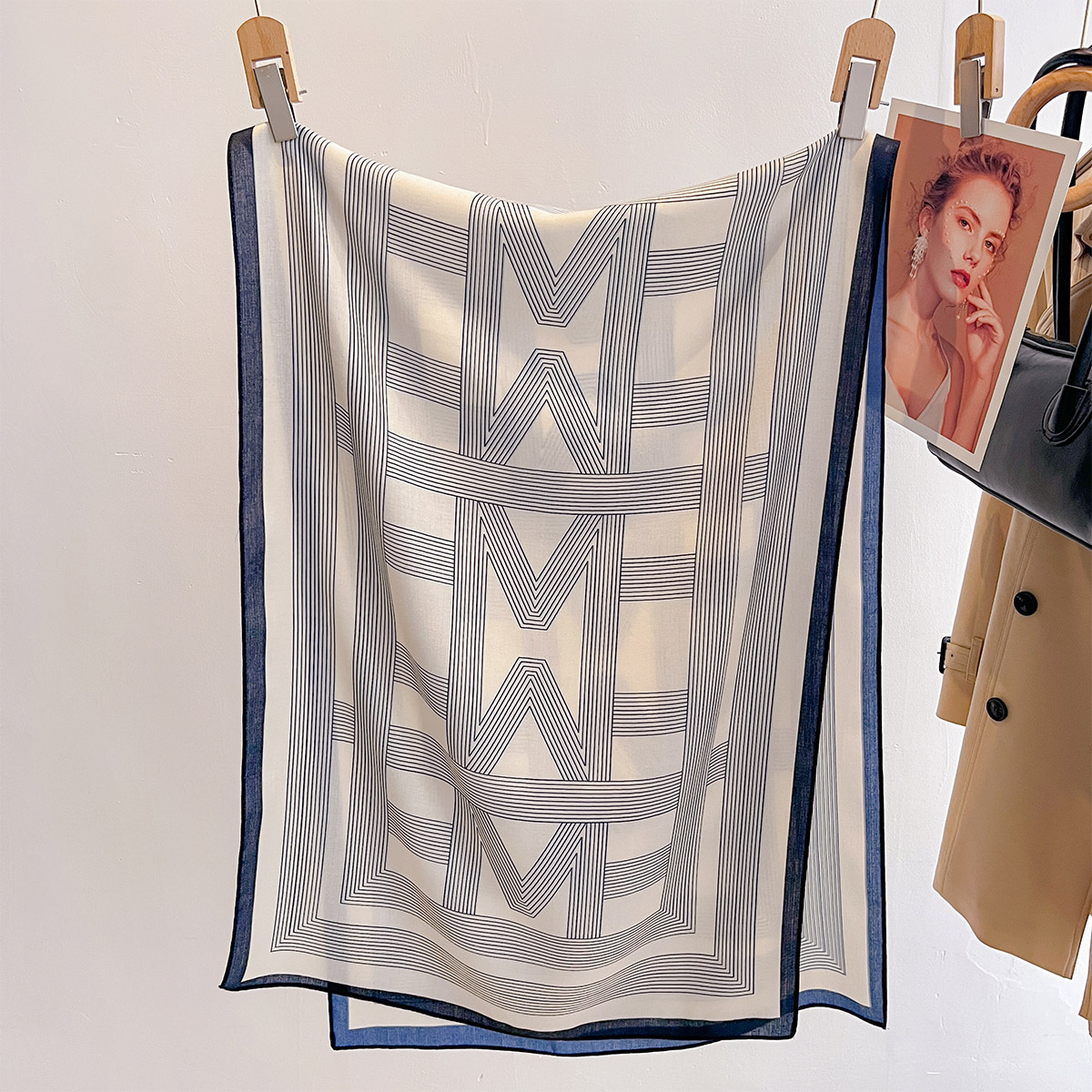 2025 봄 여름 새로운 스타일 심플 스카프 하이 엔드 패션 중간 길이 실크 스카프 스트라이프 비치 타월 숄 여성용