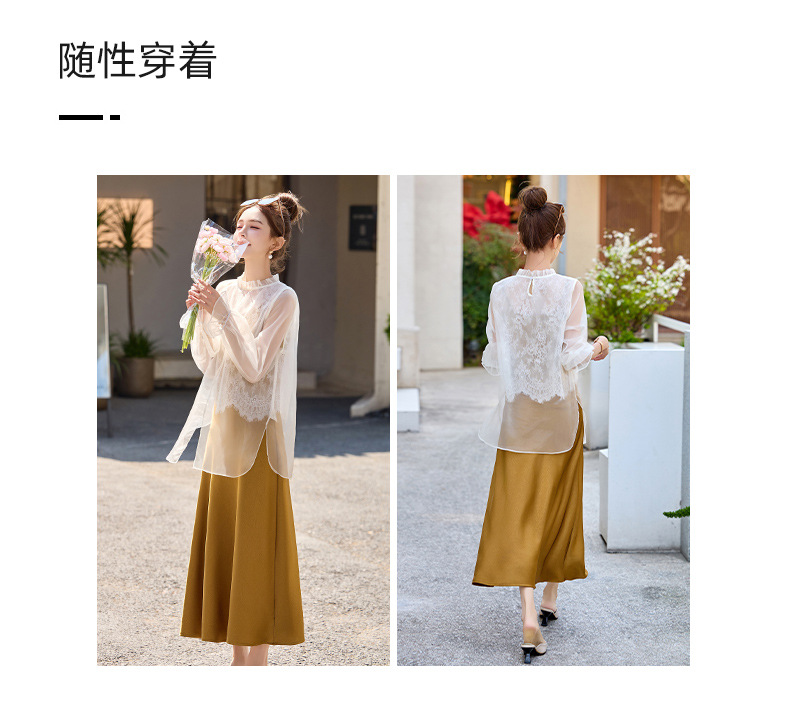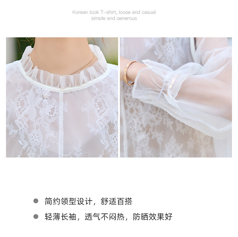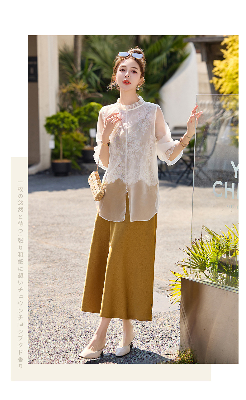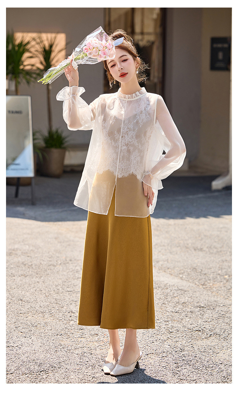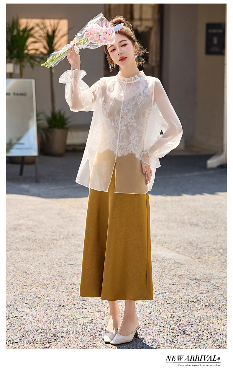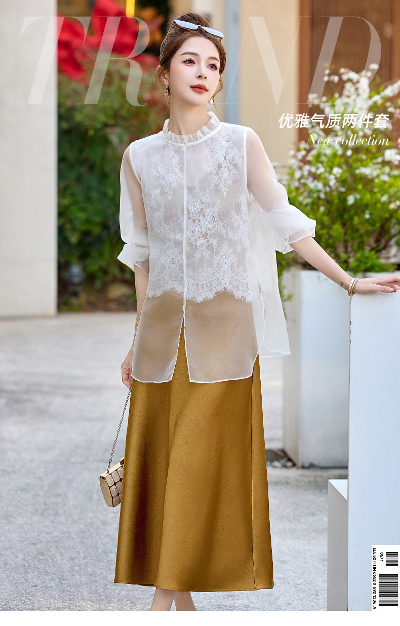 여성을위한 정장 2025 새로운 스타일 중국 스타일 복고풍 기질 메쉬 디자인 레이스 스탠드 칼라 자외선 차단 셔츠 정장 스커트