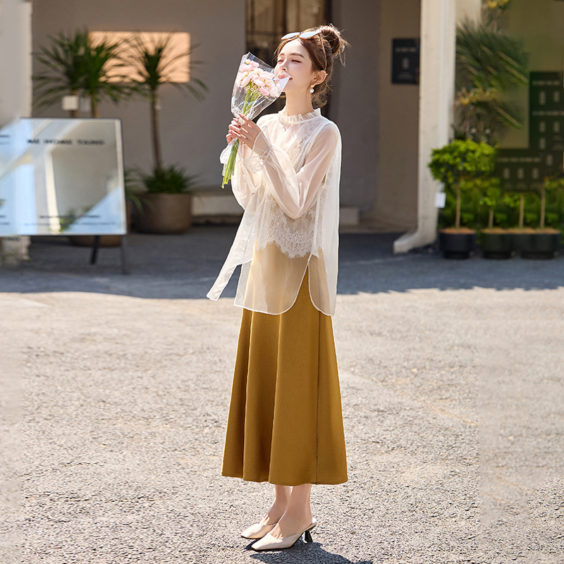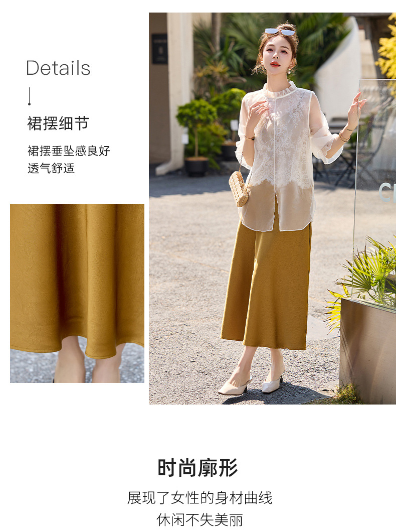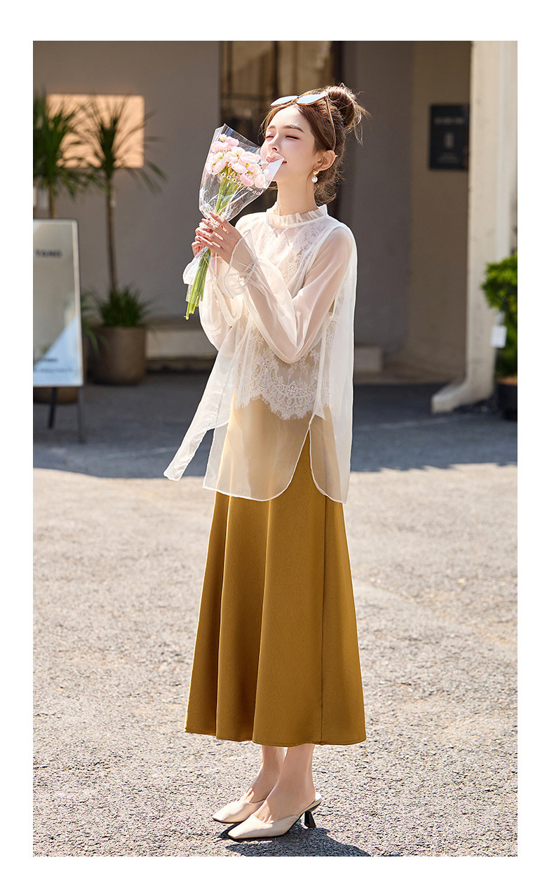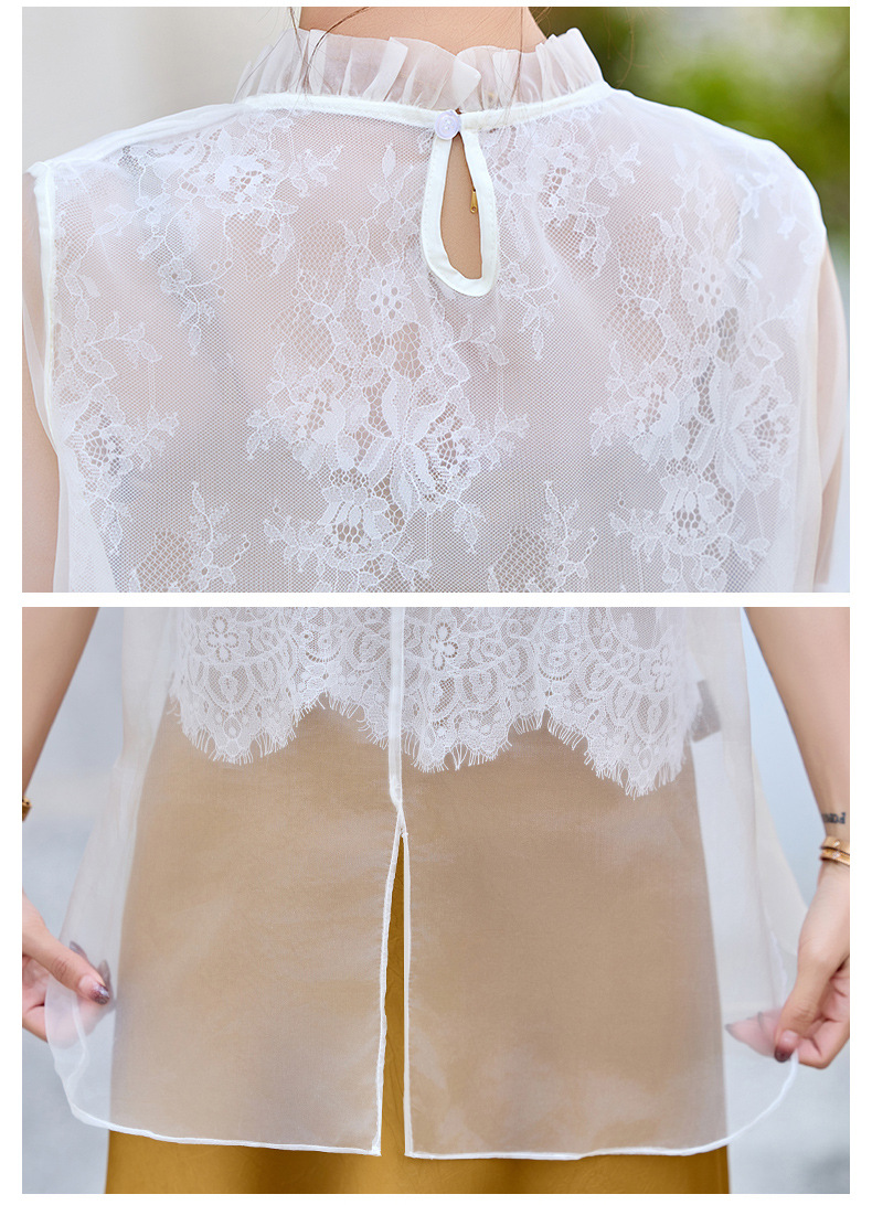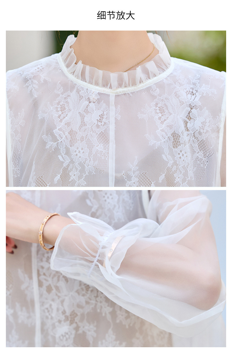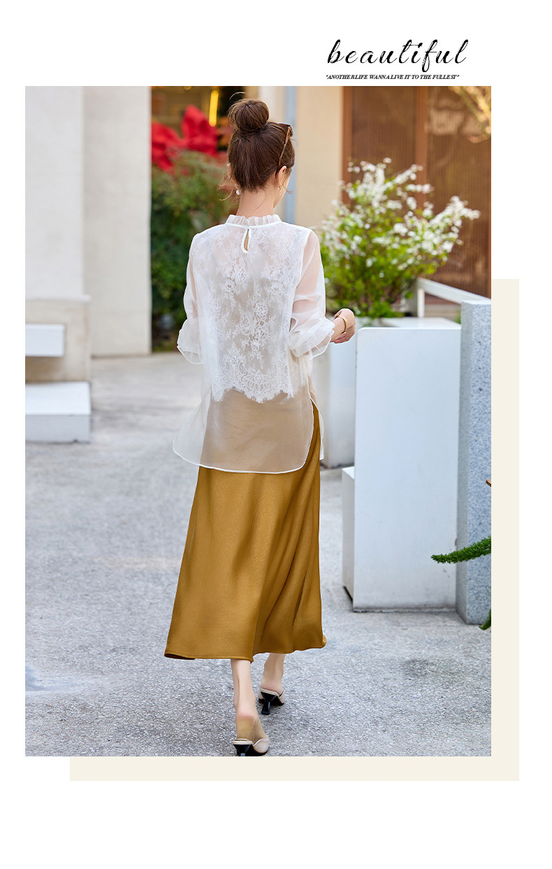여성을위한 정장 2025 새로운 스타일 중국 스타일 복고풍 기질 메쉬 디자인 레이스 스탠드 칼라 자외선 차단 셔츠 정장 스커트