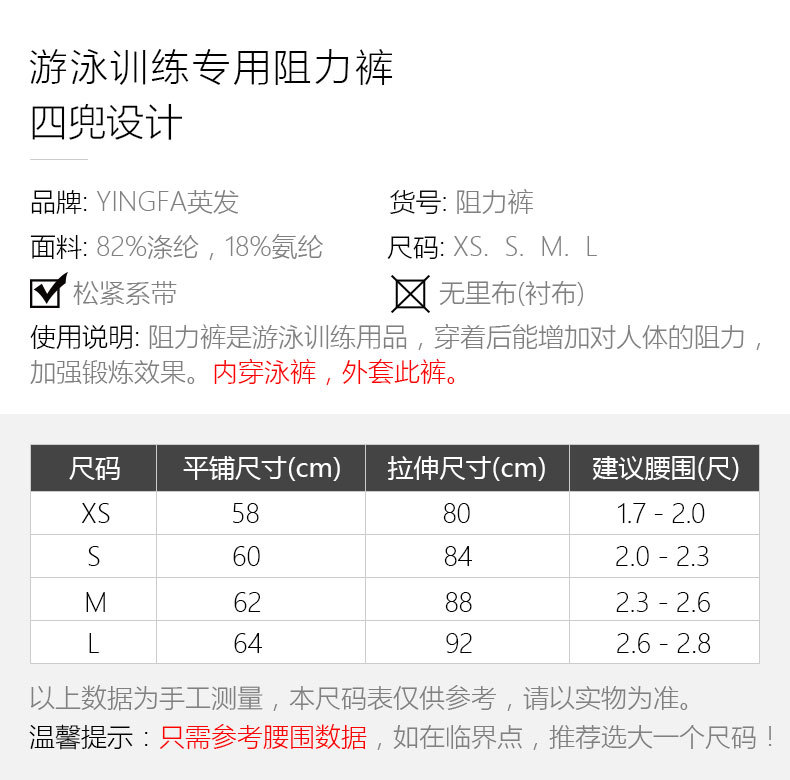 Yingfa 저항 바지 전문 수영 훈련 경주 수영 바지 남성용 중대형 어린이 성인 청소년 4 포켓 디자인스토어 가기