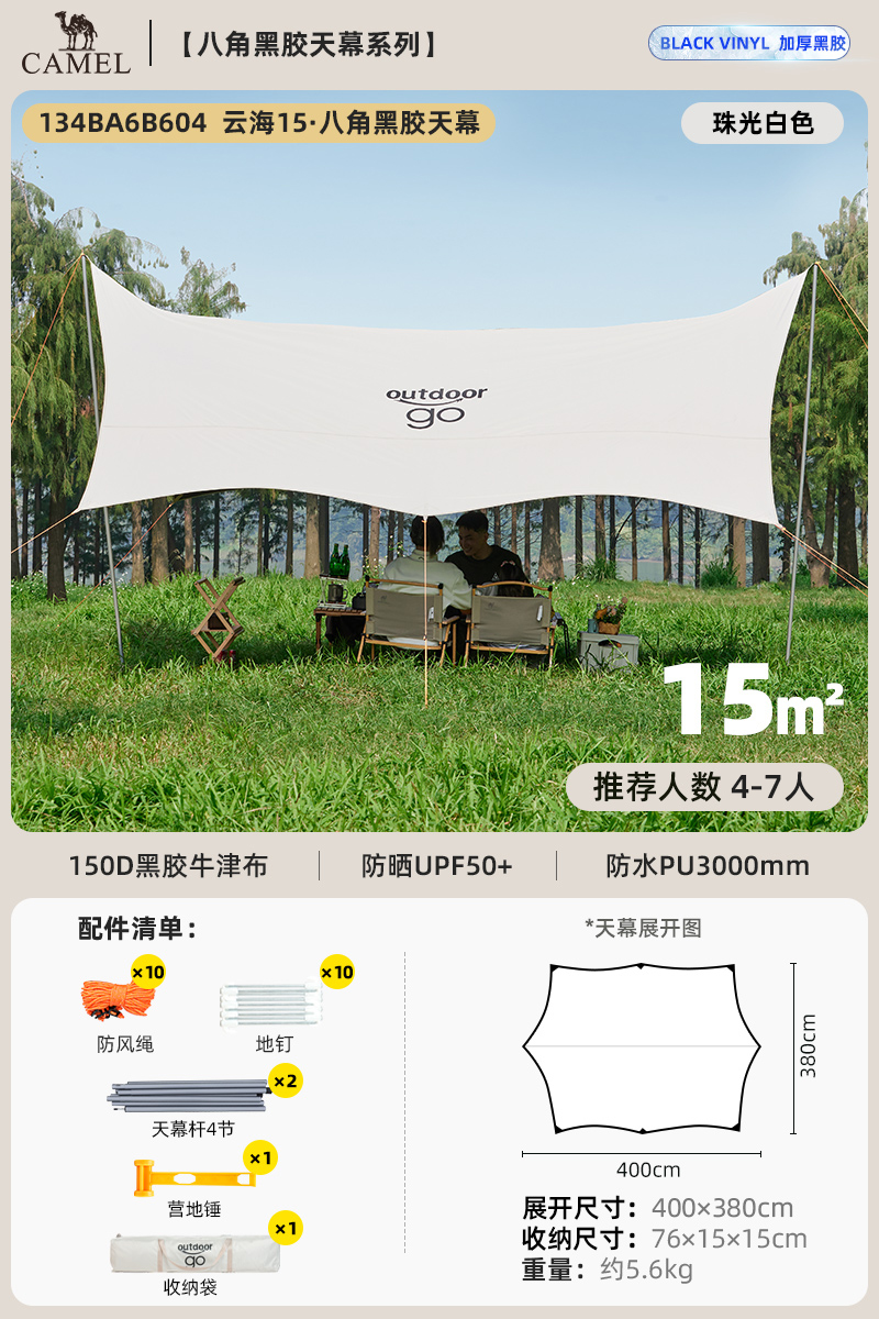 Camel Out Eight-Pointed Large Canopy Tent 야외 대형 비닐 자외선 차단 및 방수 휴대용 캠핑 방풍 차양