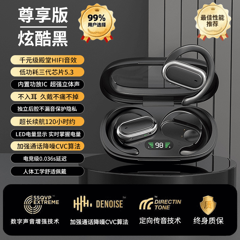 [Berlin Voice] 무선 블루투스 헤드셋 귀걸이형 고품질 골전도 스포츠 슈퍼 긴 배터리 수명 2024 고