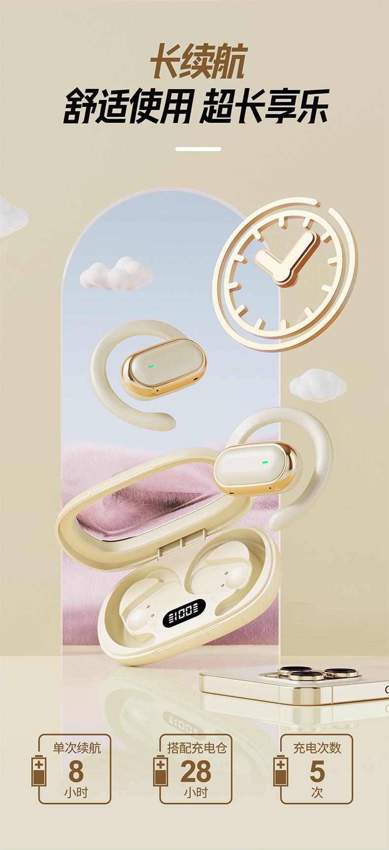 [Berlin Voice] 무선 블루투스 헤드셋 귀걸이형 고품질 골전도 스포츠 슈퍼 긴 배터리 수명 2024 고스토어 가기